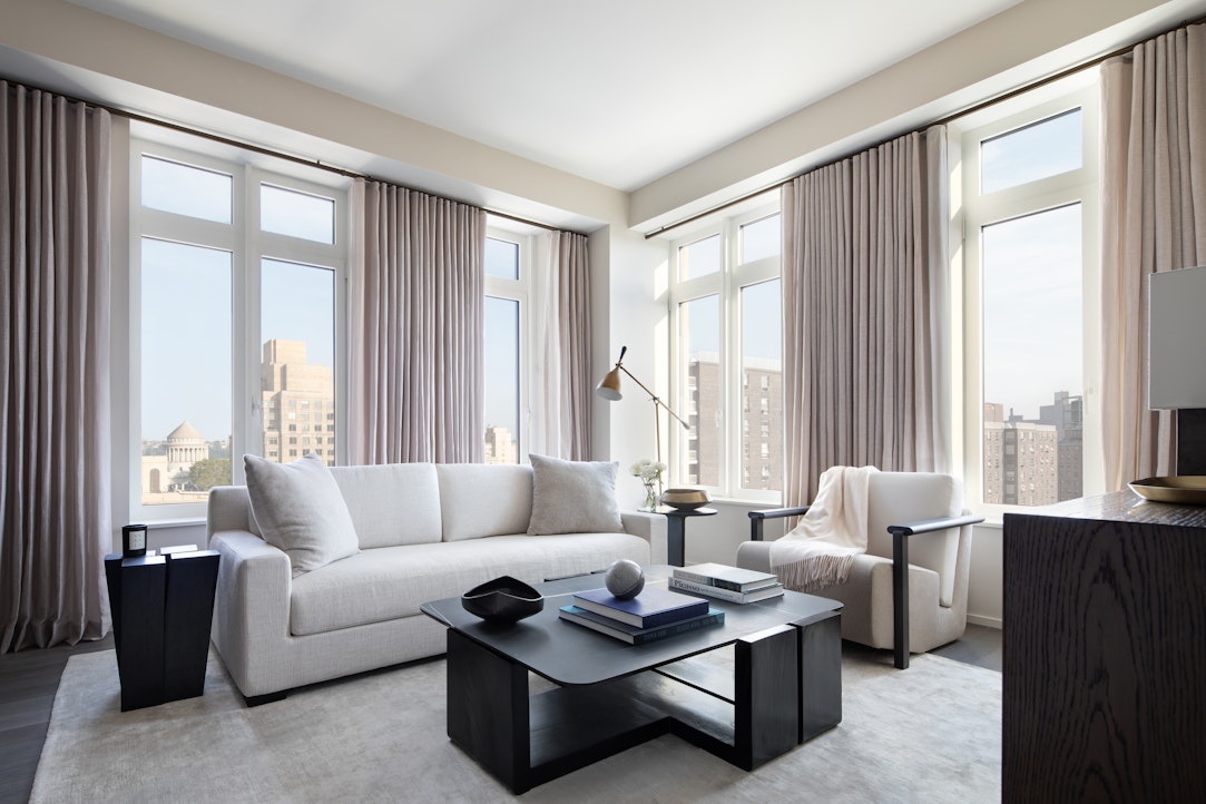 Vandewater's interior design speaks to an old school design approach and showcases the beauty of the materials in a new and thoughtful way - oversized, high performance casement windows, tall ceilings, and European white oak floors. Elegant kitchens offer honed Perla Venata kitchen counters, chef caliber Miele appliances and custom, craftsman inspired oak cabinetry with pewter hardware. Primary bathrooms are outfitted with honed Windsor Cream marble, soaking tub, large shower with frameless glass enclosure, pewter fixtures, and custom oak and travertine vanities. All homes have the latest hvac technology from Climatemaster, laundry equipment from Whirlpool or GE, and recessed LED lighting. All residences have remarkable light, garden views and dramatic city vistas from the top third of the building. Preserved views in every direction allow for virtually no obstructions past the 20th floor, providing views of the George Washington Bridge, Hudson River, Central Park, downtown Manhattan and beyond. Select residences have outdoor terraces.