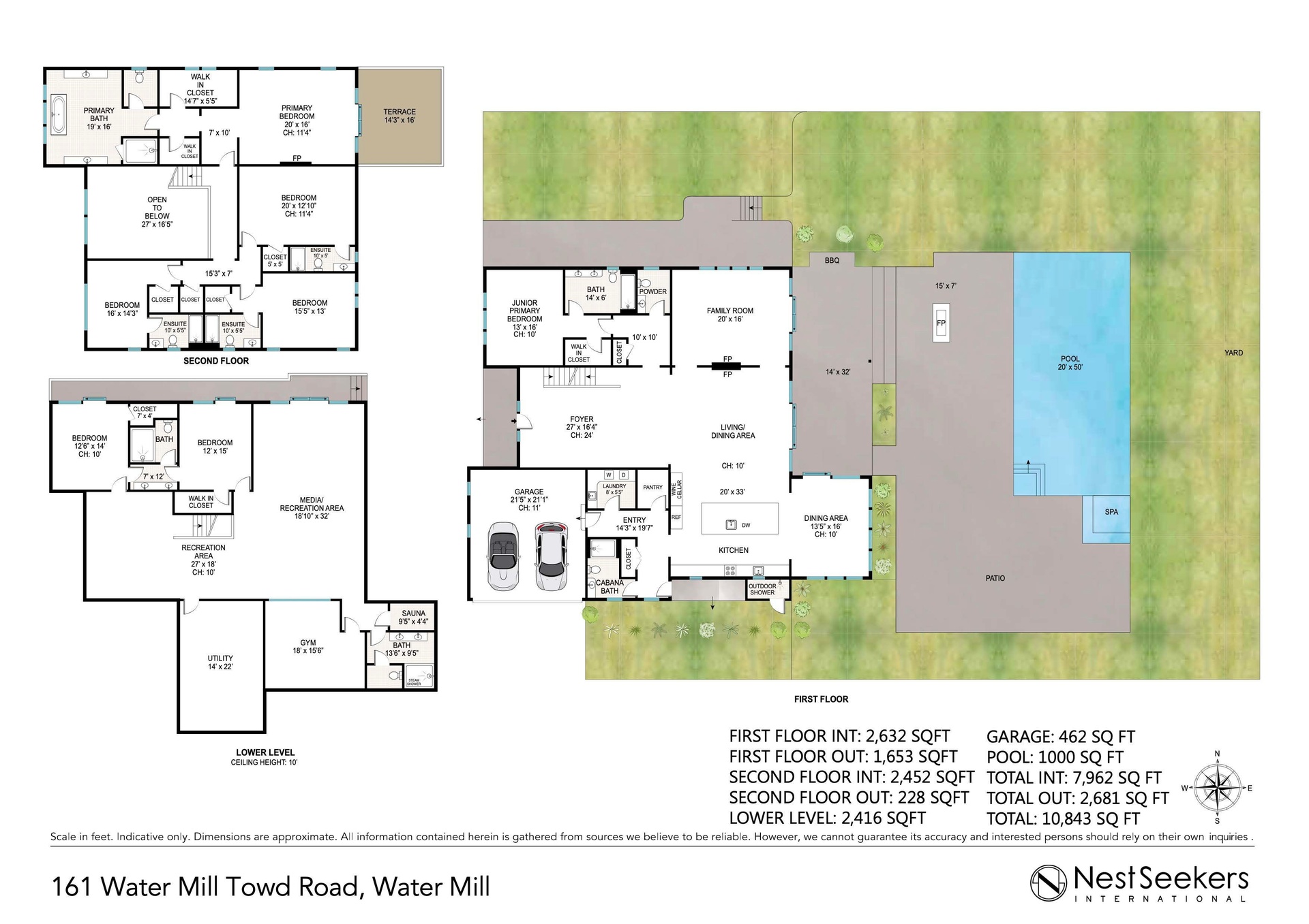 Welcome to this stunning New Construction home located in the desirable area of Water Mill, with 7 bedrooms and 8.5 bathrooms spread across 7,500 square feet, this home offers luxurious living on a spacious .95-acre lot. As you enter through the beautiful double height foyer, you are greeted by a double-sided fireplace that connects the living room to the den, creating a cozy atmosphere perfect for entertaining. The gourmet kitchen features top-of-the-line appliances including a Wolf range, Sub Zero fridge, 2 Bosch dishwashers, and a wine cooler, making it a chef's dream. The custom metal hood over the range adds a modern touch to the space. The first floor includes a junior primary suite, perfect for prefer single-level living. The second floor boasts a luxurious primary suite with a private deck and fireplace, as well as three additional bedrooms each with their own full bathrooms. The basement is an entertainer's paradise with two bedrooms connected by a bathroom, a sauna, gym, and a full bathroom with a steam shower. Outside, you will find a spa, 50x20 ft pool, outdoor shower, and a built-in firepit on the patio, perfect for enjoying summer evenings. With an attached 2-car garage, laundry in the mudroom, and room for pickleball, this home has everything you need for a luxurious lifestyle in the Hamptons. Don't miss the opportunity to make this dream home yours.