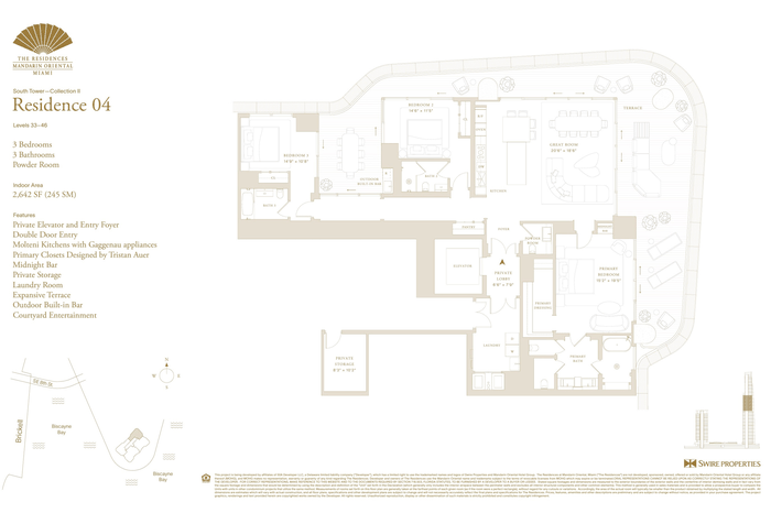 Step into a world of unparalleled elegance and sophistication at the Residences at Mandarin Oriental, Miami. Nestled in the exclusive Brickell Key neighborhood, these exquisite residences offer breathtaking views of Biscayne Bay and the Miami skyline, creating a serene oasis in the heart of the city. Each residence is thoughtfully designed with high-end finishes, spacious layouts, and floor-to-ceiling windows that flood the interiors with natural light, blending elegance with contemporary aesthetics for a truly luxurious living environment.