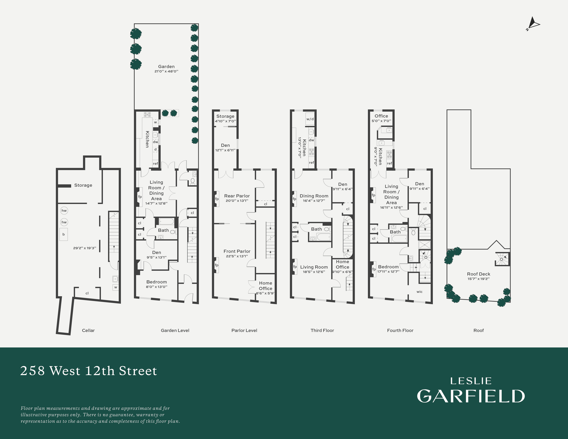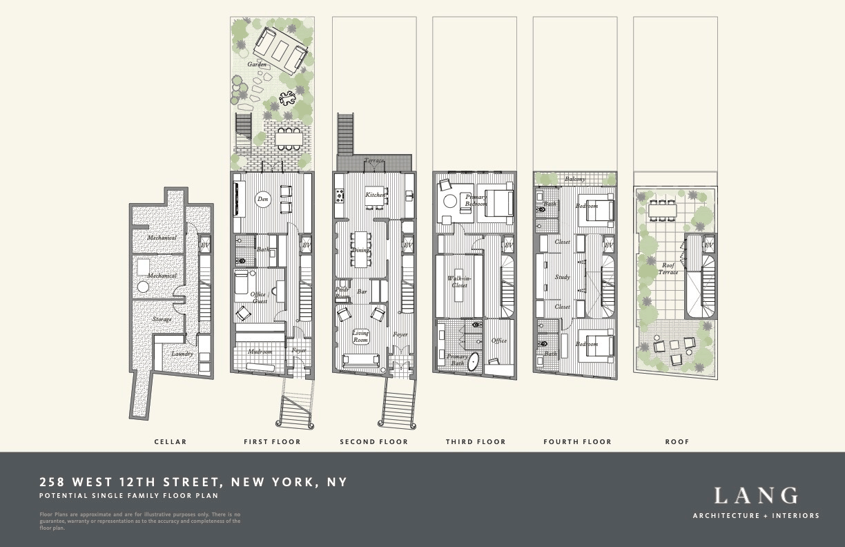 The exceptional 98-foot-deep lot presents a lush, south-facing private garden— bathed in natural sunlight and surrounded by other townhouse gardens, creating a country like oasis. A 400-square-foot rooftop deck provides breathtaking panoramic views of the city skyline and the Hudson River.
