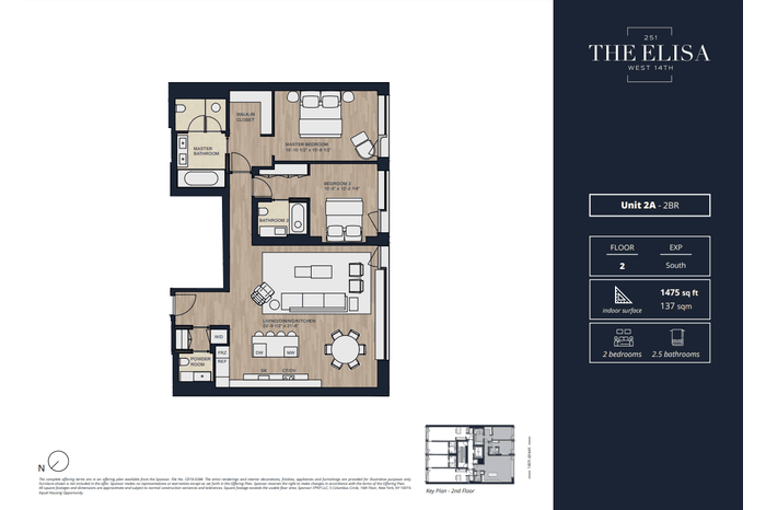 The Elisa is a distinctive boutique condominium situated at the convergence of three of the city’s trendiest neighborhoods on the west side of Manhattan. Lush greenery punctuates a multi-faceted façade composed of classic redbrick and flecked stone slabs. Residents enjoy several thoughtful lifestyle amenities that include a rooftop garden with stunning skyline views, full-time door attendants, a fitness club with a tranquil courtyard, a bicycle room, common laundry room and private storage available for purchase. The building is moments from dozens of restaurants, bars, cafes, art galleries, and shops, and it is close to Chelsea Market, the High Line, Little Island, the Hudson River Greenway, and the Whitney Museum of American Art. Nearby subway lines include the A/C/E/L/F/M/1/2/3.