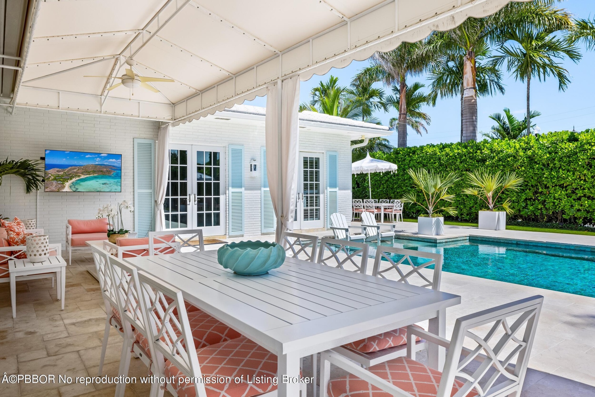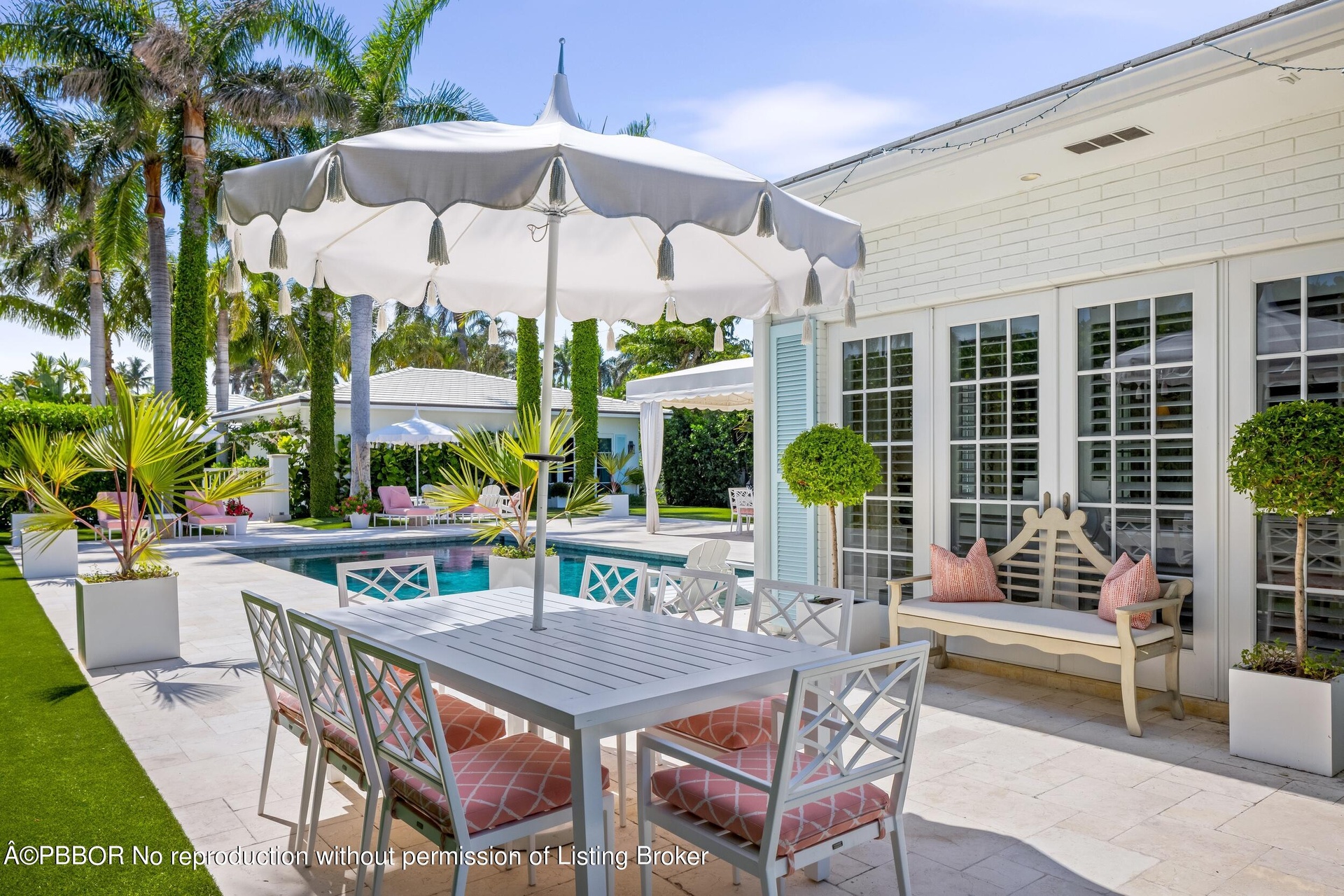 Casa El Dorado sits on an incredibly spacious double lot. This tastefully appointed 7BR/7.1BA home with 6,493+/- SqFt is situated in convenient and coveted Near North End location. Highlights include home theater, gym, eat-in kitchen, and 2 car garage. Gorgeous guest house with living room, gourmet kitchen, and full bath. The perfect Palm Beach backyard with beautiful pool, putting green, BBQ area, and conversation patio surrounding firepit. Perfectly situated on 21,000+/- SqFt lot.