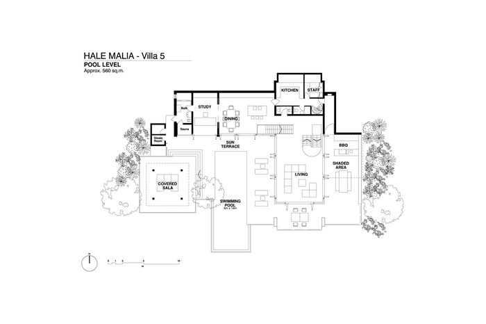 There are extensive staff quarters at the rear of the villa of over 100 sqm (appx. 1,076 sqft). These include a 2nd full western kitchen, staff bedrooms and common area, and large laundry. The entire staff quarters access the main villa levels through their own private doorways to keep guest privacy to a maximum.