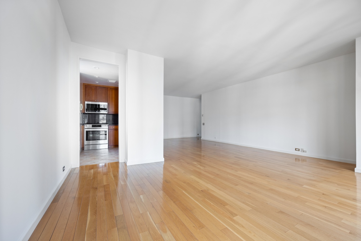 The E-line at 100 United Nations Plaza on the 20th floor is coveted for its open northern and southern panoramas. From the sun-drenched great room enjoy entertaining and dining with open views of the iconic southern skyline. The apartment's generously-proportioned living space is nearly 30-feet long, boasts floor-to-ceiling windows with sliding doors, and provides seating arrangement flexibility with room for dining for 10 or more. The renovated windowed kitchen has a western exposure, granite countertops and backsplash, custom wood cabinets, recessed lighting, and stainless-steel appliances from Sub Zero, Bosch, Miele, and GE.