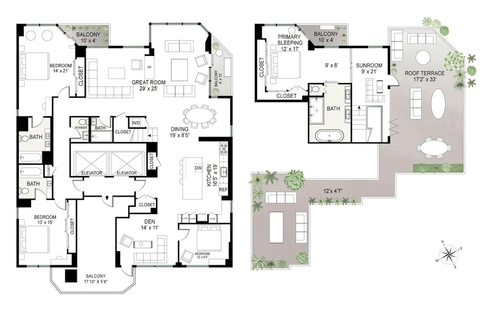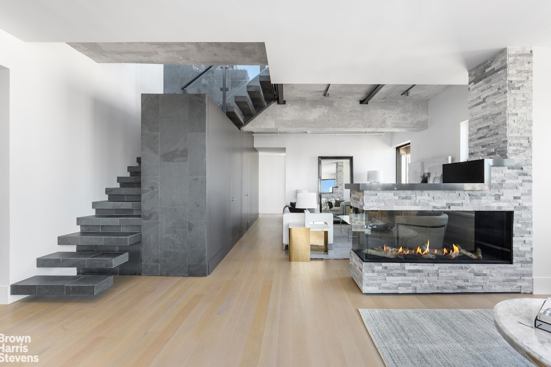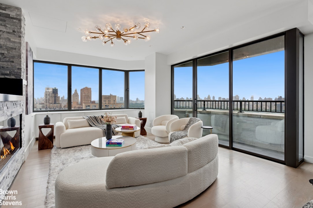 bedrooms with two en-suite baths complete this level, one with a private balcony overlooking Central Park and the West Side.