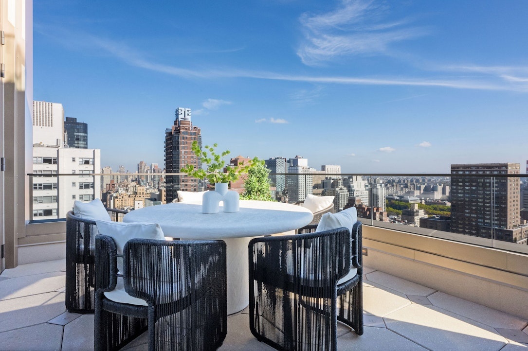 The expansive open kitchen by INC Architecture & Design features exquisite finishes, including cerused oak cabinetry and bespoke Mont Blanc quartzite countertops, providing an inviting setting for seamless entertaining as well as everyday living. Recessed and cove lighting add warmth and a full suite of Miele appliances ensures premium-caliber performance. The south-east facing terrace is the epitome of luxury and practicality, offering breathtaking views of the city. With a convenience gas connection it is an ideal space for outdoor cooking and dining, with ample space for seating and entertaining.