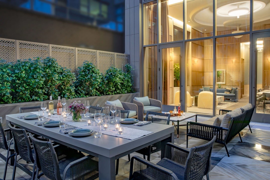 Set on the ground and second floor, The Treadwell's light-filled indoor amenities open to beautifully landscaped outdoor spaces. The double-height lobby is staffed 24-hours-a-day to ensure personalized service and prompt attention to all requests. The two floors of amenities enhance every moment spent at home, including a Club Lounge for festive private parties, terraced Meditation Garden, Fitness Center with Sauna and Steam, Children's Playroom and Craft Room. Residence at The Treadwell includes complimentary one-year memberships to Sollis Health.