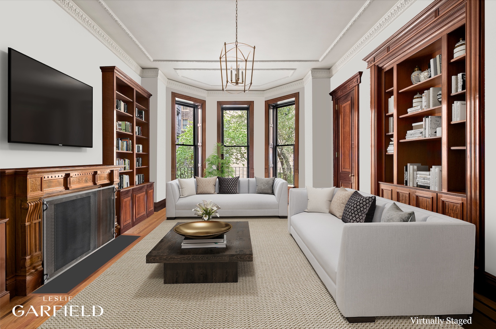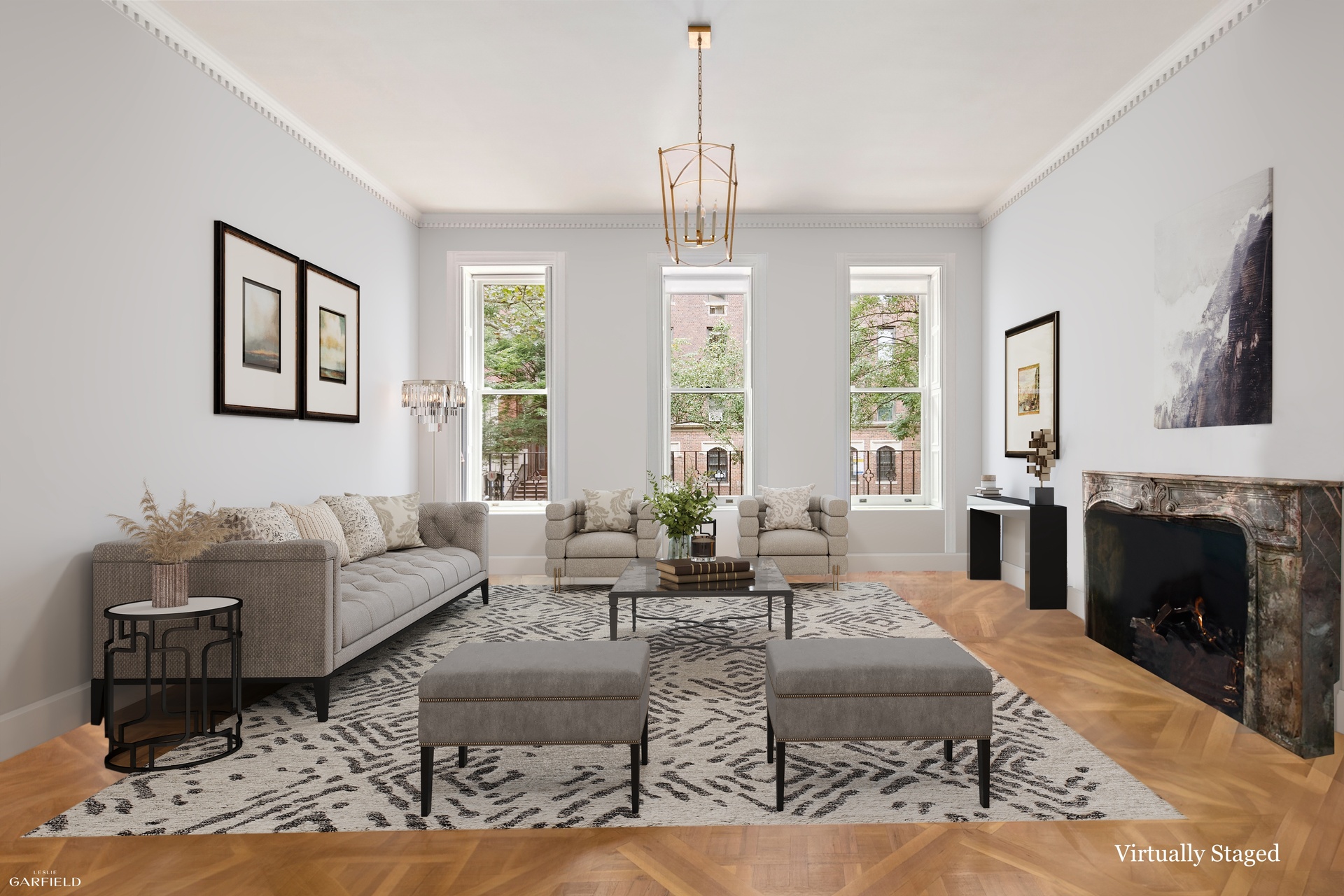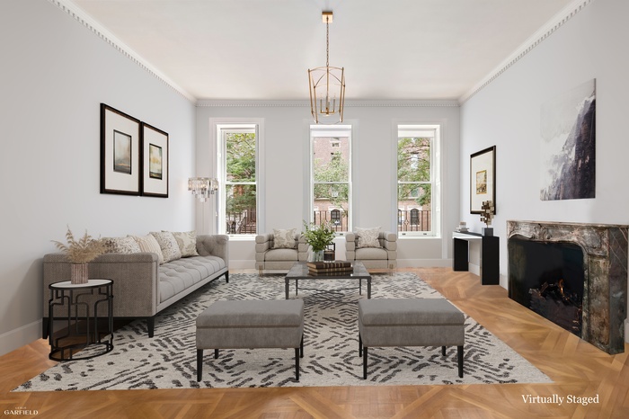 159 East 71st Street is in great condition with charming character and abundant natural light throughout. The house comprises a total of 11 rooms, which include six bedrooms, a maid's room, five full bathrooms, and one powder room. The garden level boasts a spacious eat-in kitchen that leads to an open living and dining area that looks out to a generously sized, landscaped garden. There is also a maid's room and full bathroom on this level. The parlor floor boasts high ceilings with a spacious living room in the front and an elegant wood paneled library in the rear that overlooks the garden below. Furthermore, there is a powder room and a wet bar on this floor for convenience when entertaining. The third floor features a primary bedroom with three large south-facing windows, a spacious dressing area with ample closet space and an ensuite bathroom along with another bedroom or office with an ensuite bathroom. Finally, the fourth floor houses four bedrooms and two bathrooms. This magnificent home  is perfect for both everyday living and entertaining. Its coveted location in one of the Upper East Side's most desirable neighborhoods provides easy access to top-rated schools, exceptional restaurants, shops, art galleries, and world-class museums.