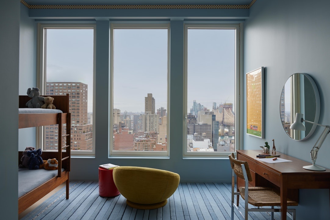 Residence 24B is a generous three bedroom, three bathroom home, with 10-foot ceilings and floor-to-ceiling windows boasting open city and river views. The cornered living and dining areas offer abundant light with views of the bridge and skyline. Distinctive design and gracious proportions provide the perfect setting for a life well-lived amid a vibrant urban milieu.