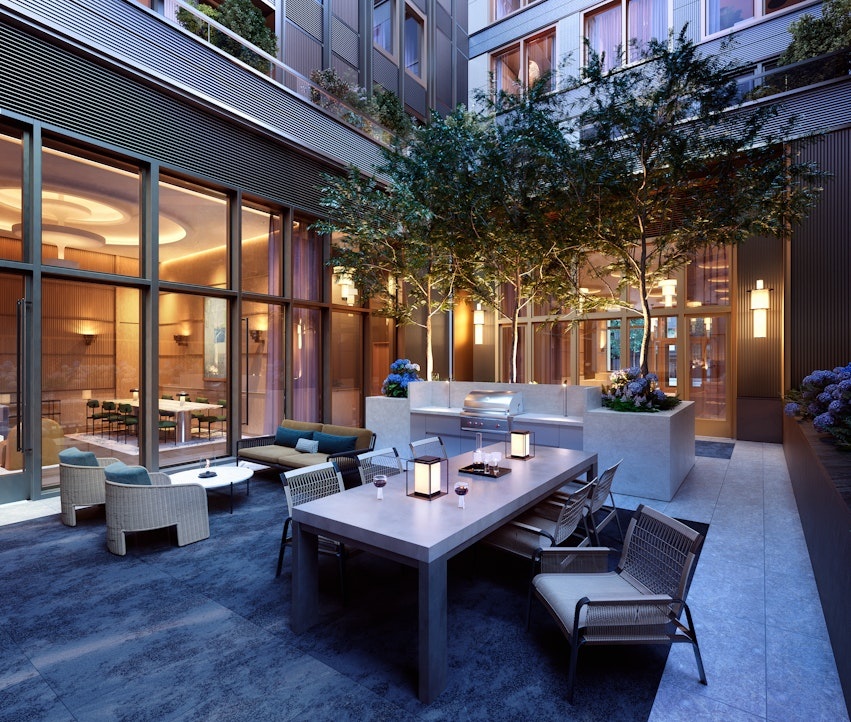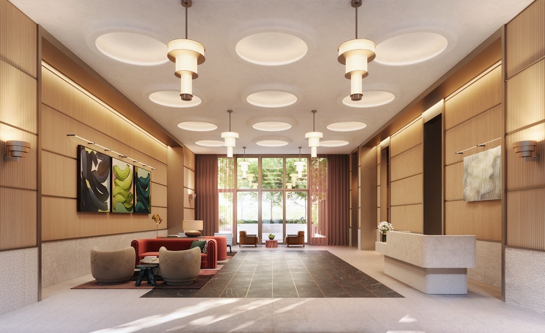 Set on the ground and second floor, The Treadwell's light-filled indoor amenities open to beautifully landscaped outdoor spaces. The double-height lobby is staffed 24-hours-a-day to ensure personalized service and prompt attention to all requests. The two floors of amenities enhance every moment spent at home, including a Club Lounge for festive private parties, terraced Meditation Garden, Fitness Center with Sauna and Steam, Children's Playroom and Craft Room.