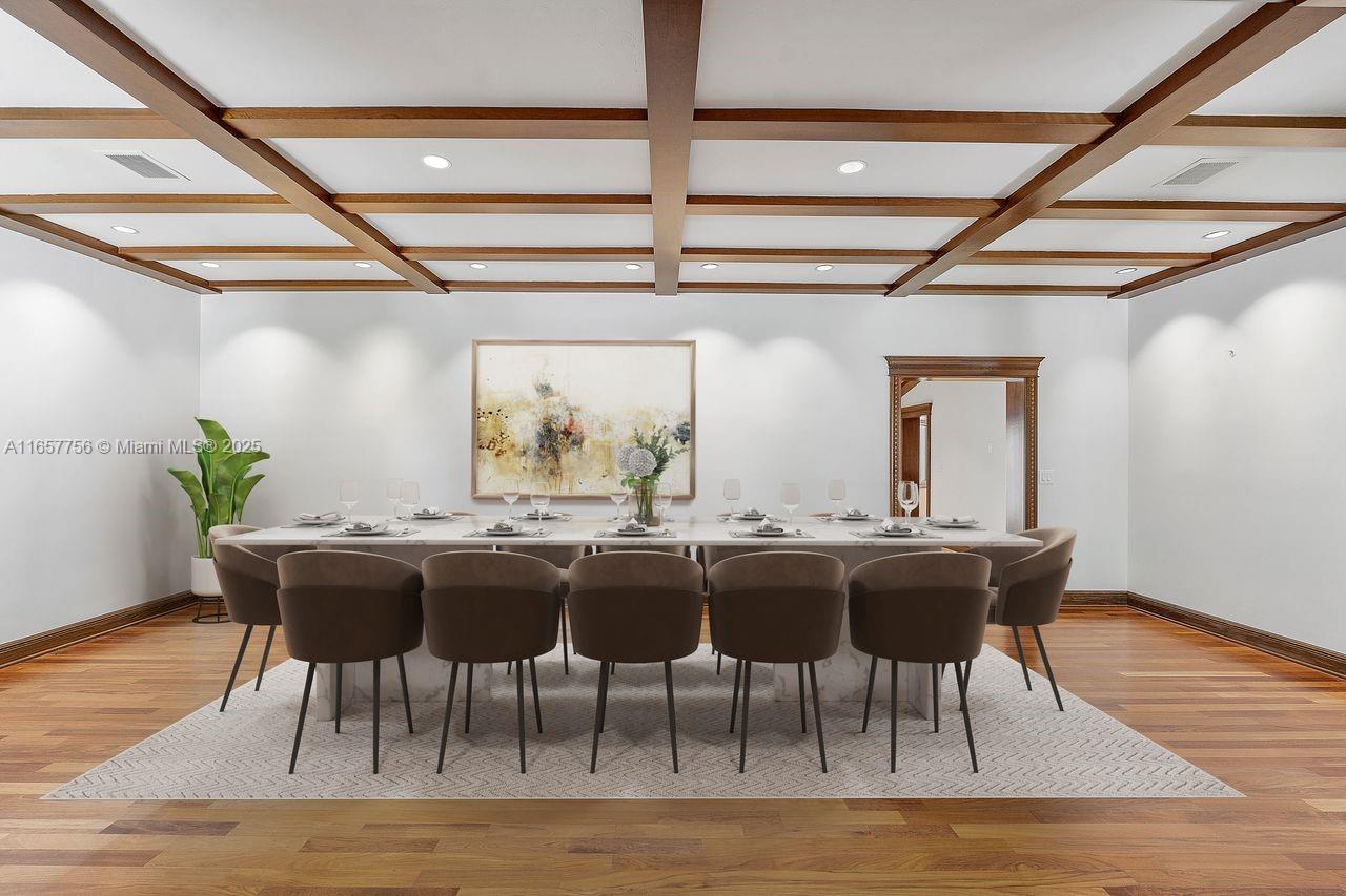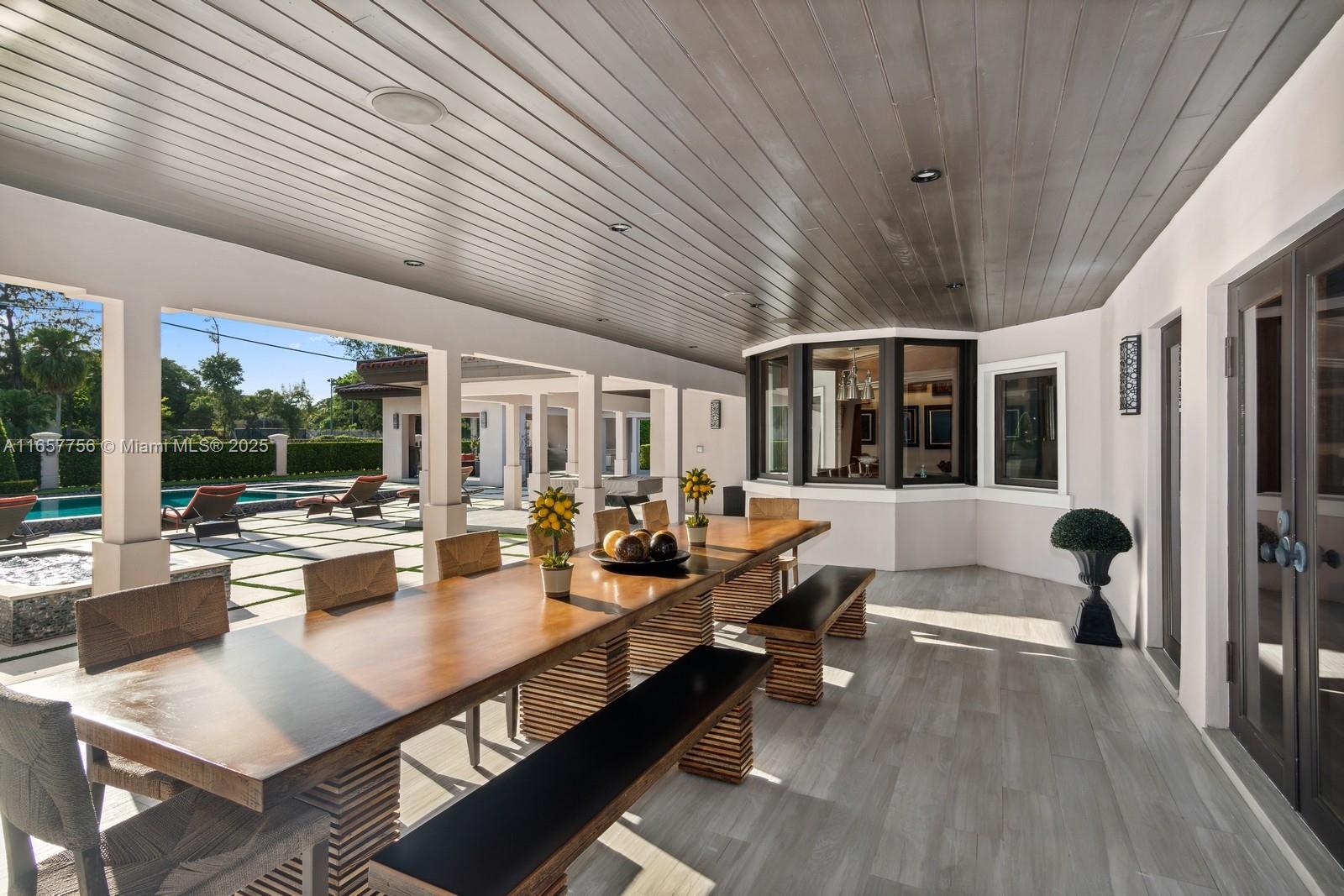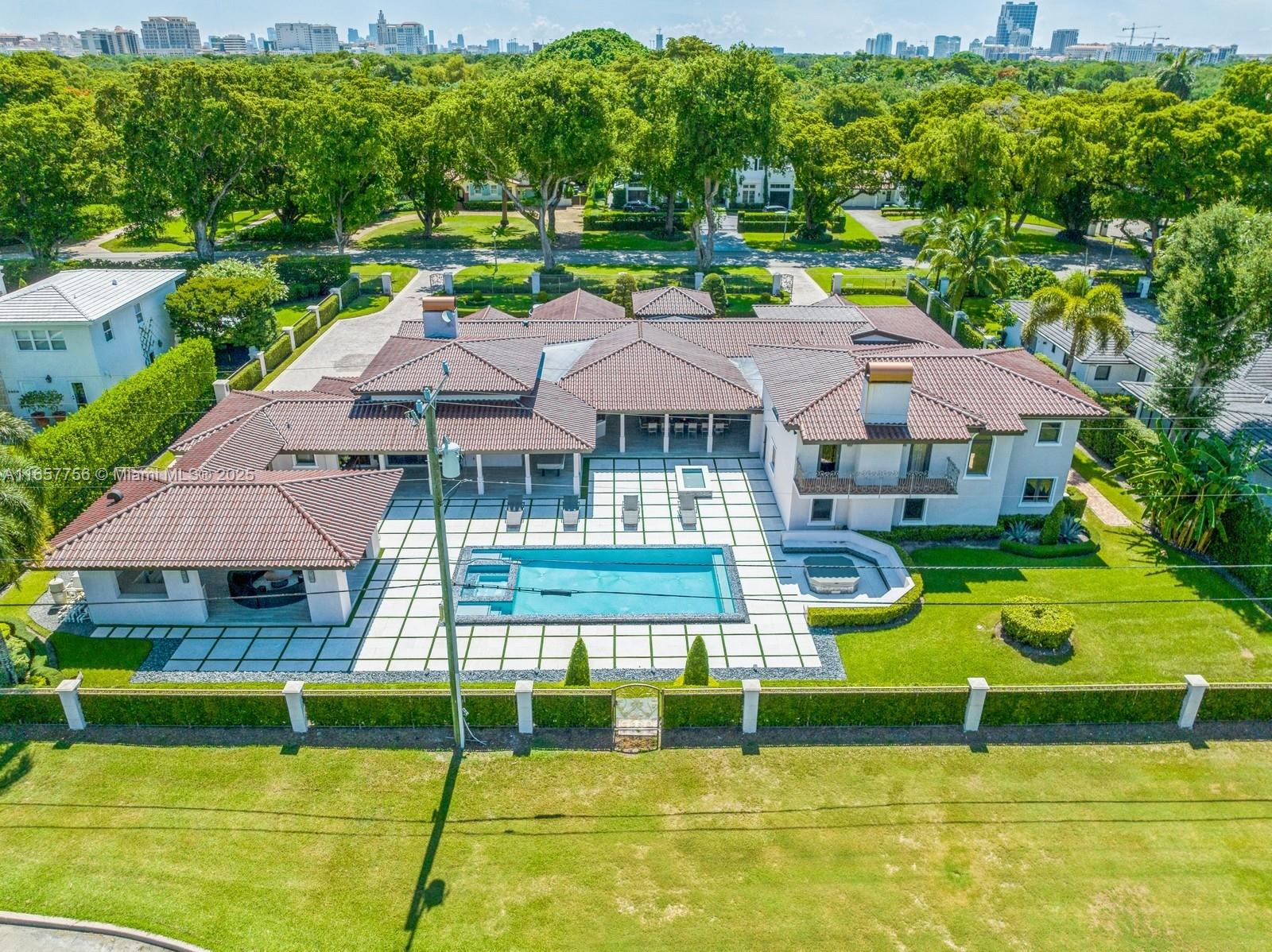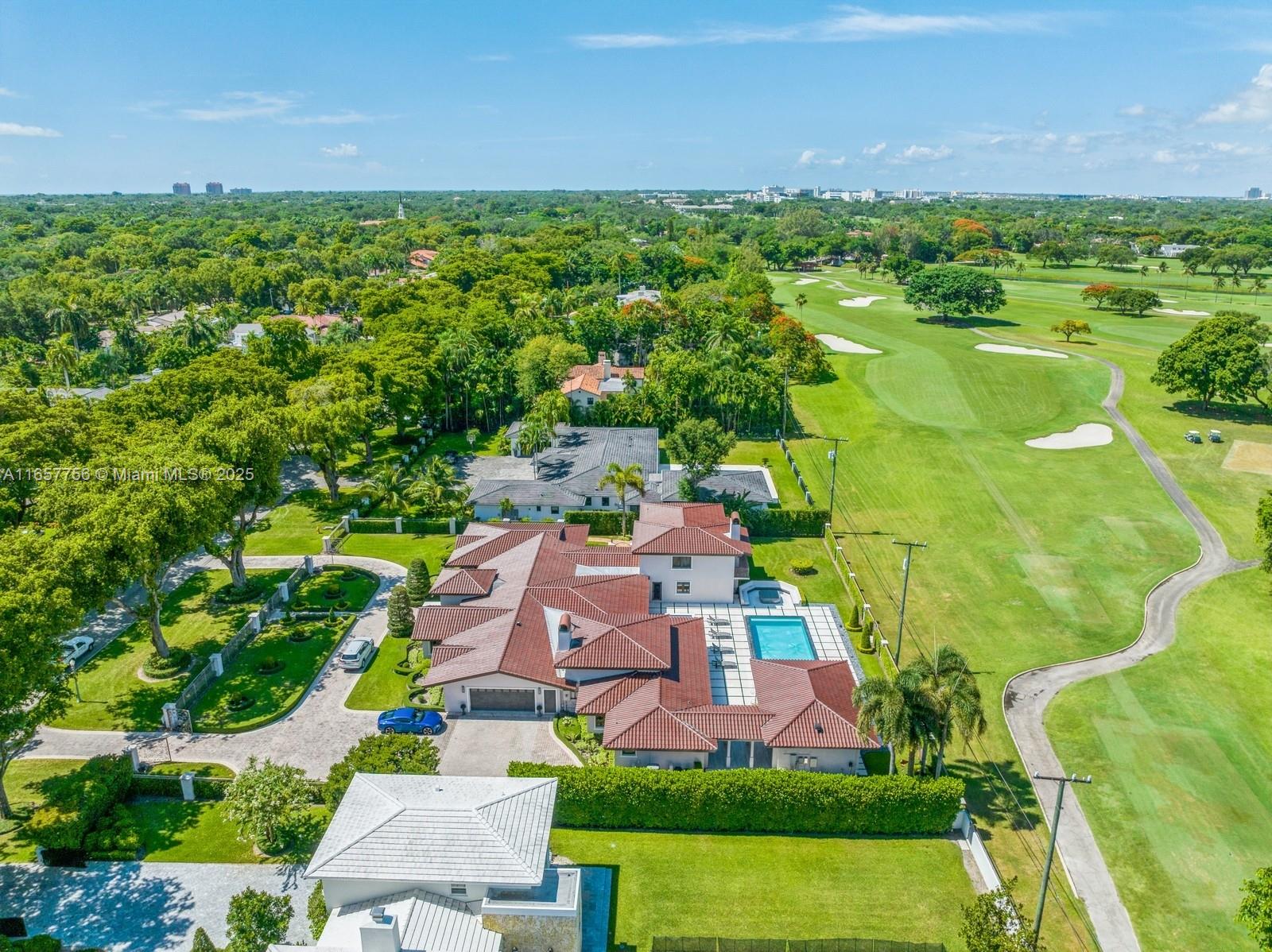 Stunning Coral Gables residence in the Golden Triangle on the Biltmore Golf Course. Step into an opulent grand foyer, where an exposed wood beam ceiling elegantly crowns the formal living room. The expansive dining room showcases Brazilian wood floors and trim, flowing into the family room with amazing pool and golf views. Ascend to the second floor to discover the primary suite, offering serene and endless views of the golf course. The gourmet kitchen is a culinary masterpiece, featuring a bespoke French gas range by LA Cornue, floor-to-ceiling cabinetry and a butler’s pantry. You will fall in love with the outdoor patio--an entertainer’s dream, complete with a summer kitchen, pool, heated jacuzzi and lush greenery . Ideally located near upscale dining and premier shopping.