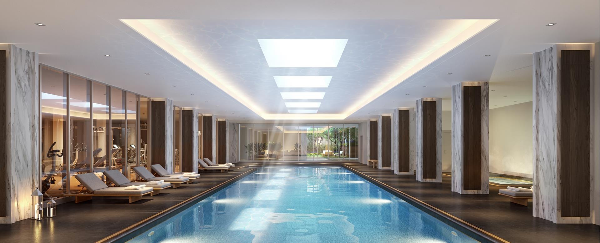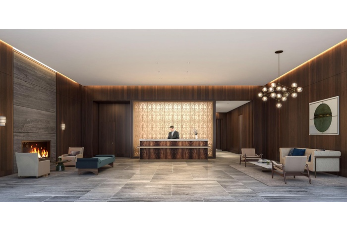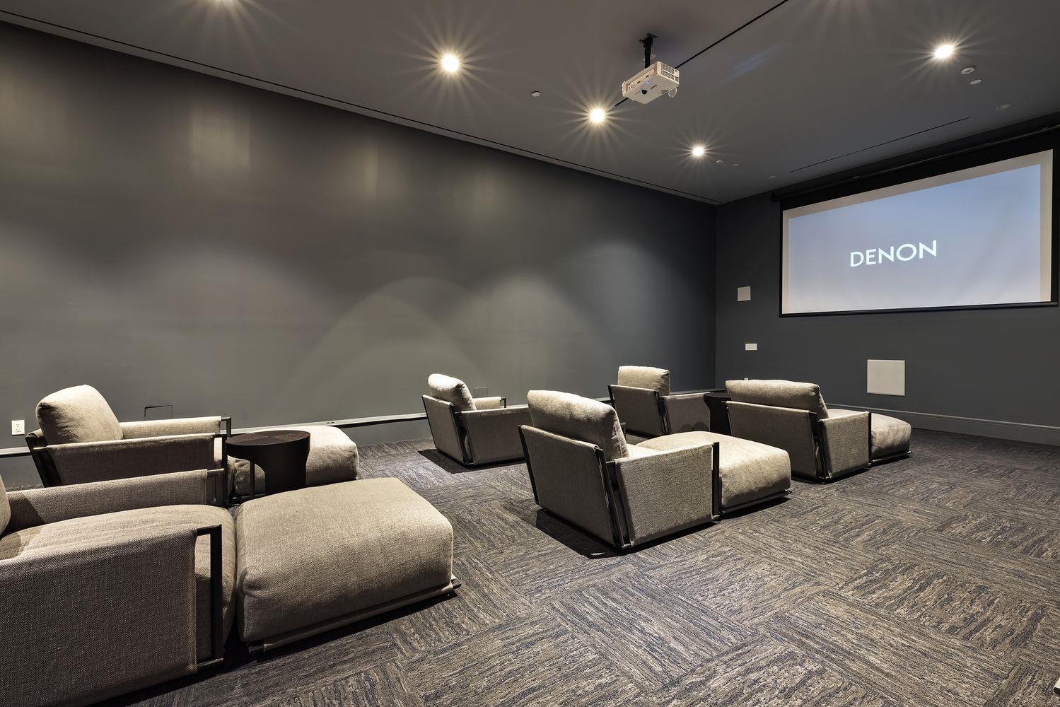 Amenities in the 18,000-square-foot Gramercy Club include a 75" lap pool, fitness center, sauna/steam rooms, yoga studio, children's play area, residents" club room, screening room, and golf simulator.