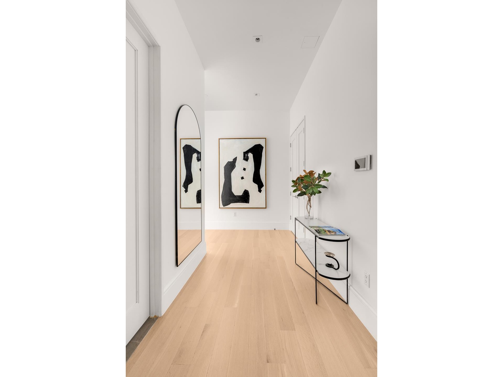 Upon entering the home, a private foyer opens to a loft-like open kitchen and great room with spectacular natural light and views of the Chrysler Building.