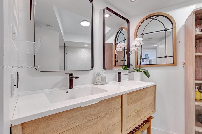 This fully renovated modern 2 Bed/2 Bath high-rise home offers skyline and water views from every room. Each room provides access to the wraparound balcony. The newly renovated open kitchen features state-of-the-art appliances and a cooking island with counter seating. The home boasts new flooring, updated bathrooms, new AC system, and more. Amenities include 24-hour concierge security, valet service, reserved covered parking, and additional separate storage.