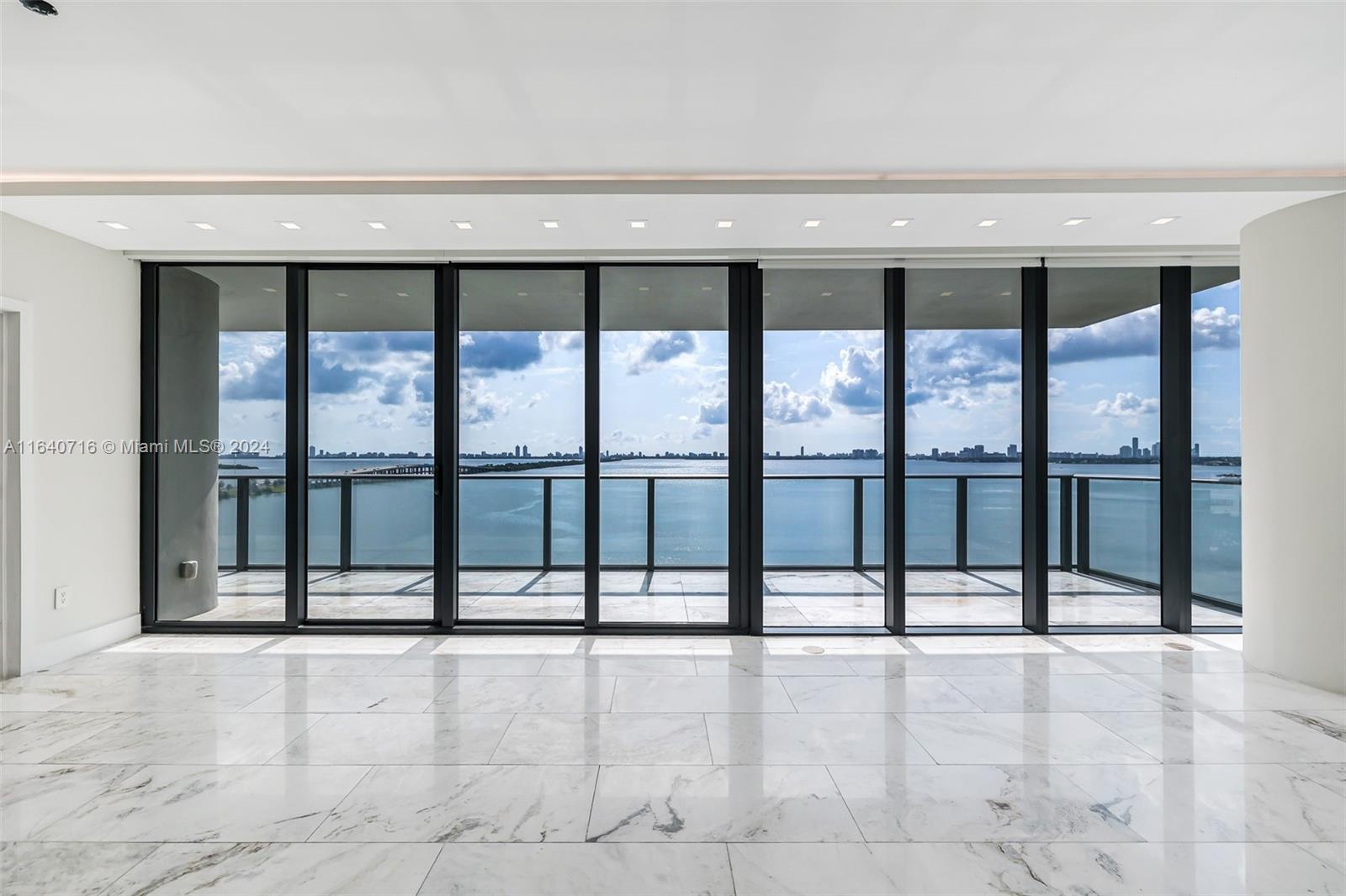 This an absolutely beautiful and privileged 3-bedroom unit located in the Southeastern corner unit of One Paraiso, which is the best corner, and this gives it a stunning and unobstructed open view into the Bay of Baiscayne and port of Miami. This flow-through unit is very spacious, and offers an enormous balcony to the East and a smaller bedroom balcony to the West. This unit also has a private elvator and foyer. The master bedroom, which faces the bay, offers a big walk-in closet, whereas the other two bedrooms also have perfect views, very good closets, and full bathrooms. One Paraiso is a high-end residential tower directly in front of Biscayne Bay in Edgewater, with an array of spectacualr amenities, including 3 pools, a luxurious spa, and a tennis court. The crown jewel of the area.