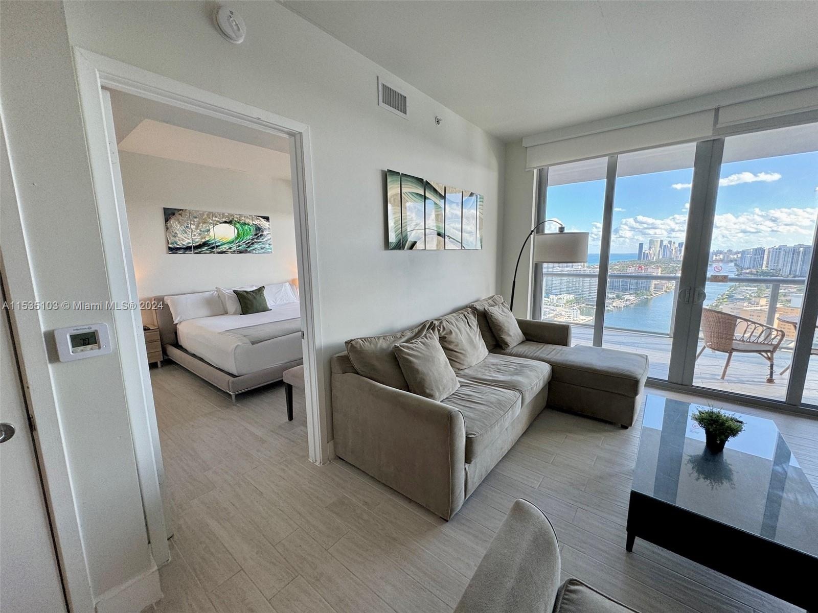 Lower Penthouse unit with incredible views of the Ocean and Intracoastal, NO RENTAL RESTRICTION WELCOME AIRBNB, EXPEDIA, BOOKING, VRBO You can also use it as an owner whenever you like! he unit features 2 split bedrooms and 2 bathrooms, and it comes fully fu thernished, tile floors, and fully equipped. The huge balcony offers breathtaking views and the unit is 10-foot ceilings height. The HOA includes all utilities, including electricity, internet, cable, water, and building insurance. Include an owner's lounge with a private rooftop pool, restaurant, fitness center, shuttle, and beach service. Guests can also enjoy an inviting pool on the ground floor. The building is conveniently located close to world-class dining, vibrant nightlife, grocery stores, shopping malls, and more.