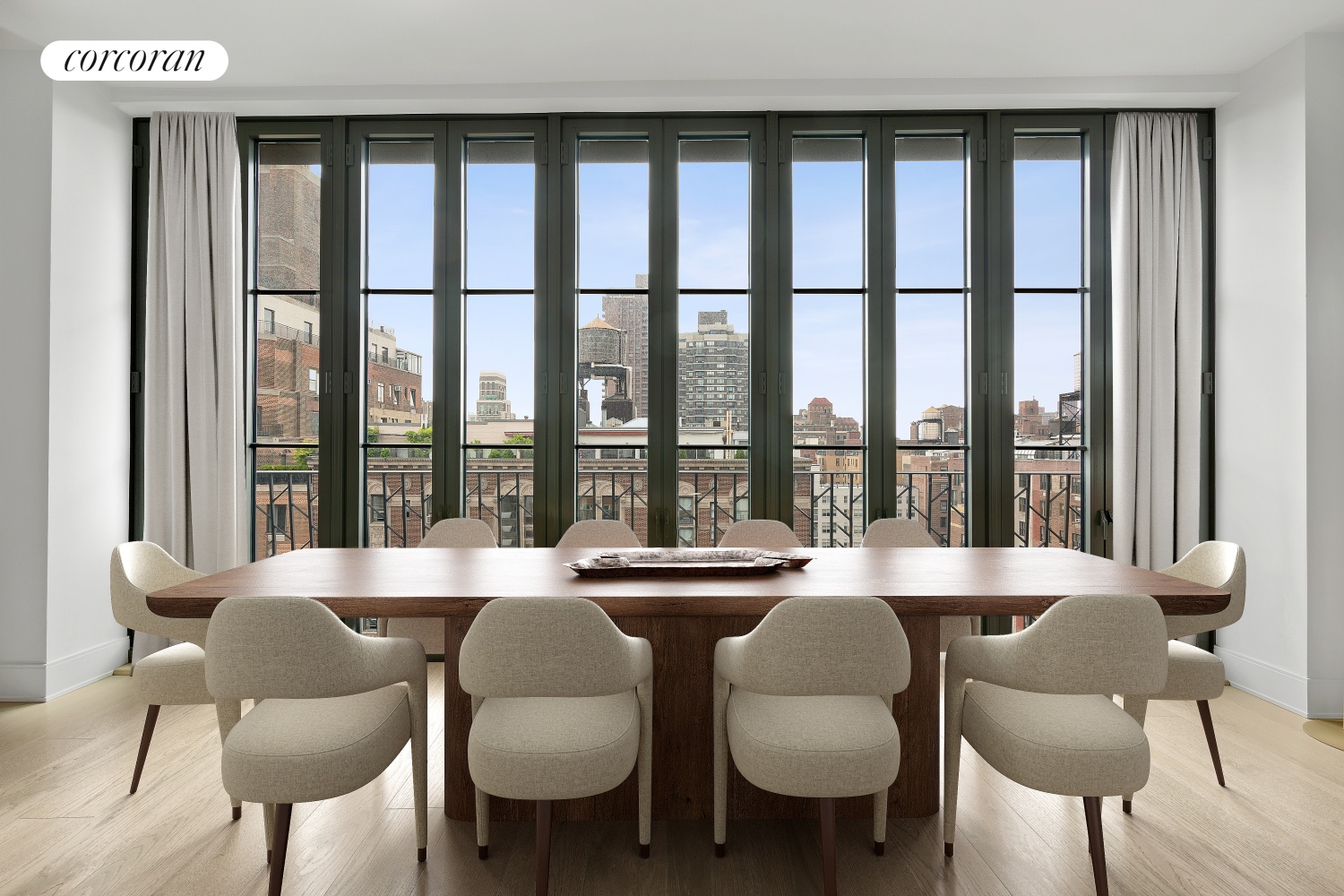 The apartment features oversized floor-to-ceiling casement-style windows, making this a sun-filled oasis with North, South, and Western corner exposures with a modern yet contemporary aesthetic throughout.