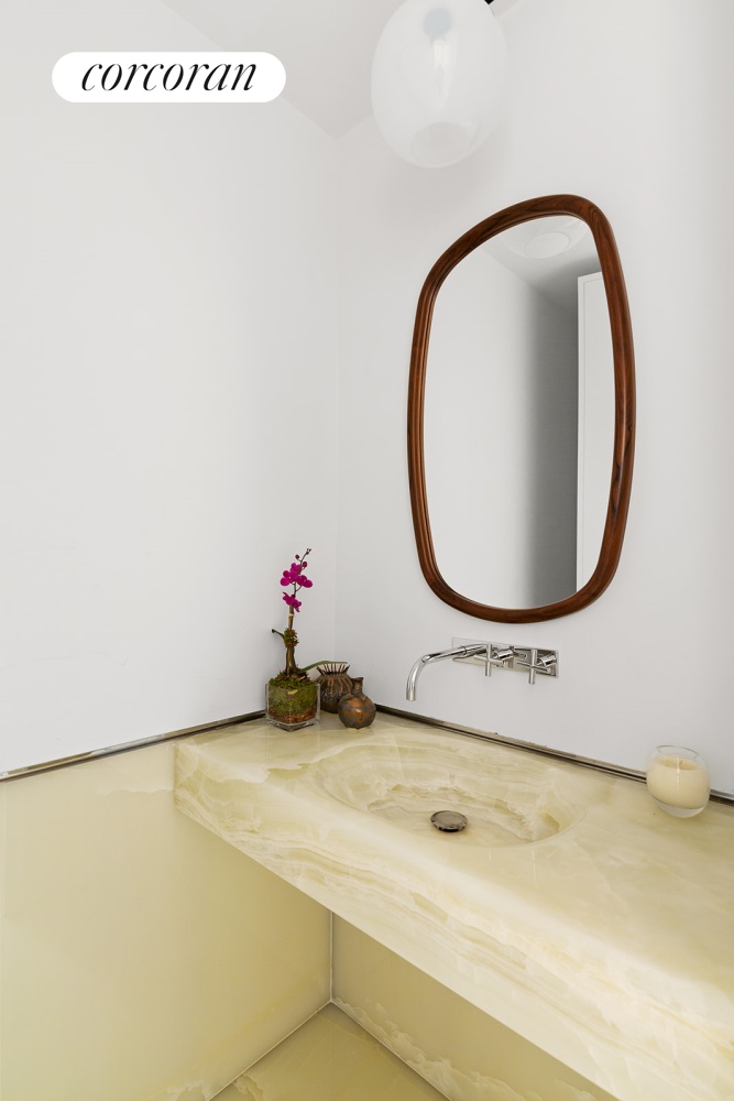 Welcomed by a modern private gallery, this full-floor residence features direct access to two keyed elevators, leading to a dramatic north-facing great room, complete with a Juliet balcony and wood-burning fireplace. The windowed kitchen features expansive Caldia marble counters, custom lacquer cabinetry, a stainless-steel Gaggenau appliance package (refrigerator, freezer, wine refrigerator, dishwasher, oven, and microwave oven), and ample storage.