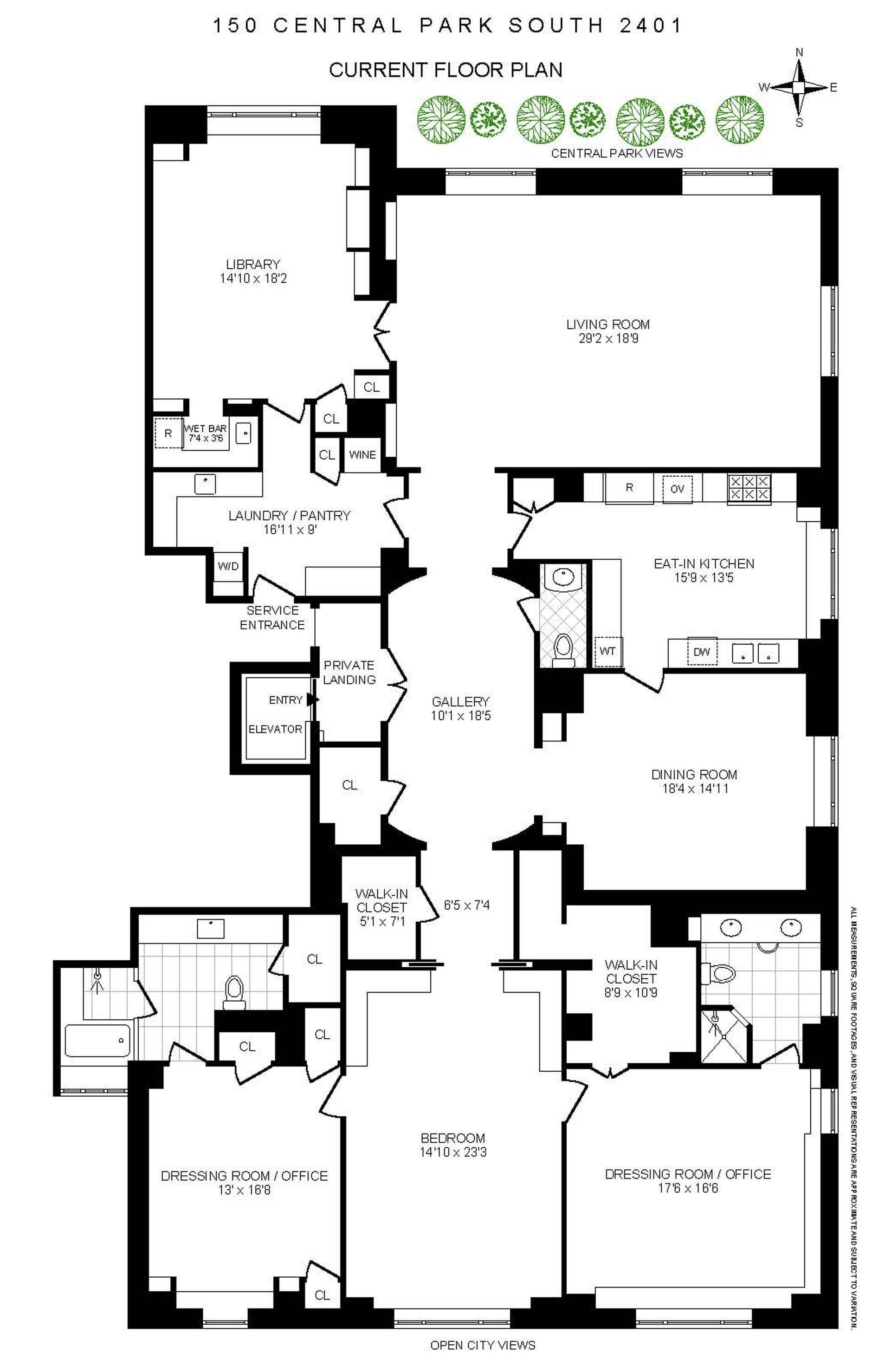 From a private elevator landing, the central marble Gallery opens to the north-facing Living Room with gorgeous views of Central Park.  Sharing those stunning vistas is a nearby Library with access to a wet bar.  The Gallery also accesses the formal Dining Room, as well as a well-equipped chef’s eat-in Kitchen with open eastern views and marvelous sunlight.  A nearby Powder Room, a large Pantry/Laundry Room, and ample closets throughout.  The bedroom wing is comprised of two very gracious Bedroom Suites, each with very ample closets and an ensuite marble bathroom.  Each of these opens to a delightfully spacious Sitting Room.  The grand scale and very inviting nature of this suite of rooms defines privacy and tranquility.    Throughout the residence, lovely hardwood floors, lighting and music systems further distinguish this stunning home.