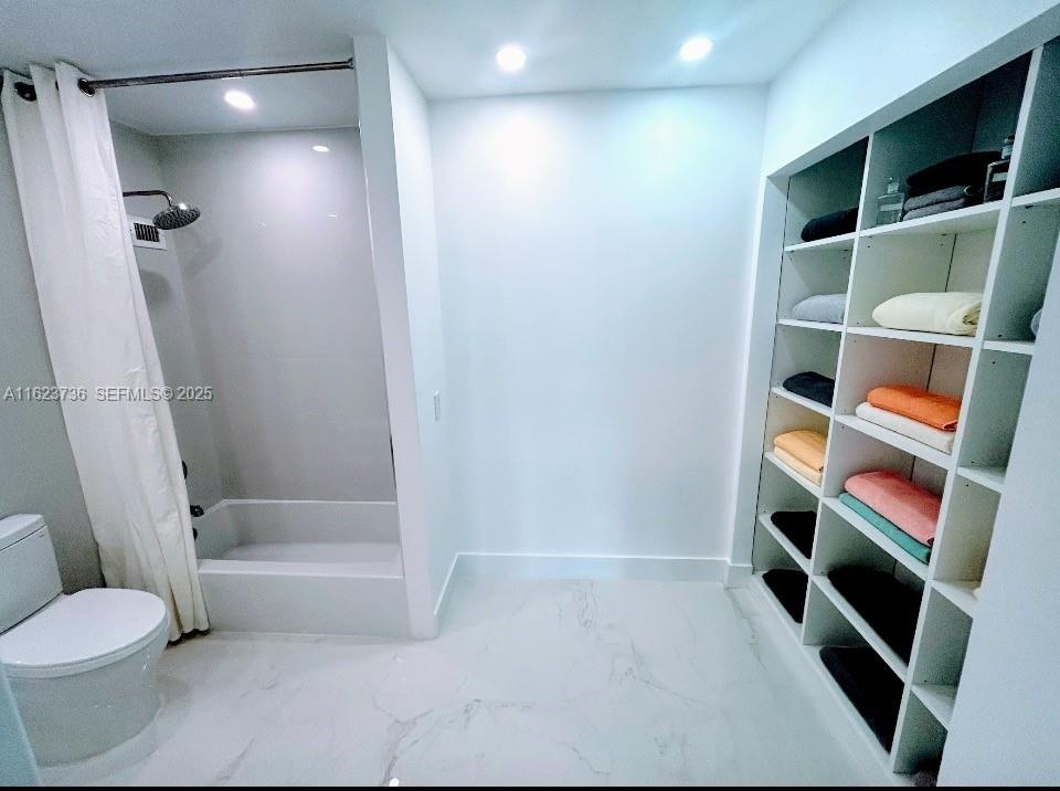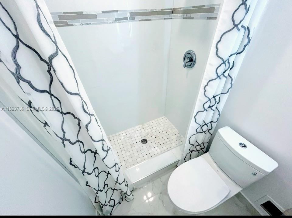 - SPACIOUS SPA STYLE BATHROOM WITH HIGH VOLUME CEILINGS AND COMPLETE PORCELINE FINISHES