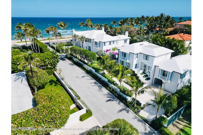 Spectacular New Oceanfront Estate on Billionaires Row - Introducing a newly constructed oceanfront compound on prestigious Billionaires Row, offering panoramic views of the Atlantic Ocean and a refined coastal living experience. This remarkable estate includes a main residence, guest house, and a private tunnel providing direct access to an oceanfront beach cabana. Bermuda-style architecture blends effortlessly with sleek transitional interiors, custom finishes, and curated furnishings throughout the property. Encompassing approximately 16,500± total square feet on .98± acres, the estate has 8 bedrooms, 12 full bathrooms, and 3 half baths. The main house features 5 bedrooms, 7 full bathrooms, 2 half bathrooms, 1 cabana bathroom, and a two-car garage. The guest house includes 3 bedrooms, 4 full bathrooms, 1 half bathroom, and a four-car garage. The property also sits at an impressive 20.3± foot elevation, offering added security and enhanced views. Designed by Dailey Janssen Architects, this stunning residence pairs timeless architectural elements with sweeping ocean vistas. The main residence is thoughtfully laid out with elegant spaces that flow seamlessly. A grand entry foyer opens to a formal sitting room and dramatic stair hall, setting the tone for the home's sophisticated aesthetic. The formal dining room connects to an oceanfront family room, while the gourmet eat-in kitchen is equipped with dual oversized islands and premium appliances, ideal for both everyday living and entertaining. The lower level features a wine cellar, an expansive great room with a fireplace and wet bar, a game room, and a yoga/exercise studio. Upstairs, the primary suite features French doors to a private oceanfront balcony, custom built-ins, dual spa-style baths, two walk-in closets, and a morning bar. Each of the four additional guest bedrooms offers en-suite baths and high-end finishes. The guest house serves as a luxurious retreat for family and guests, with a large great room that opens to a covered loggia. The main level includes two guest bedrooms with en-suite baths and an exercise room. On the upper level, a VIP suite offers a sitting area, walk-in closet, dual-vanity bath, and spacious private terrace. A four-car garage provides abundant parking and storage. For added peace of mind, the property includes a whole-house generator capable of powering the entire estate during any outage. The outdoor space is equally impressive. At the heart of the estate, a central courtyard showcases a resort-style pool and spa, framed by both covered and open-air balconies. A fully equipped summer kitchen elevates the al fresco entertaining experience, while meticulously landscaped grounds create a sense of privacy and calm. Private tunnel to the beachside cabana with potential for a beachfront plunge pool adjacent to the cabana. Located in one of Palm Beach's most coveted areas, this exceptional estate is just minutes from the world-class shopping and dining of Worth Avenue, vibrant Downtown West Palm Beach, top-rated schools, and Palm Beach International Airport. This home perfectly captures the essence of Palm Beach Island living.