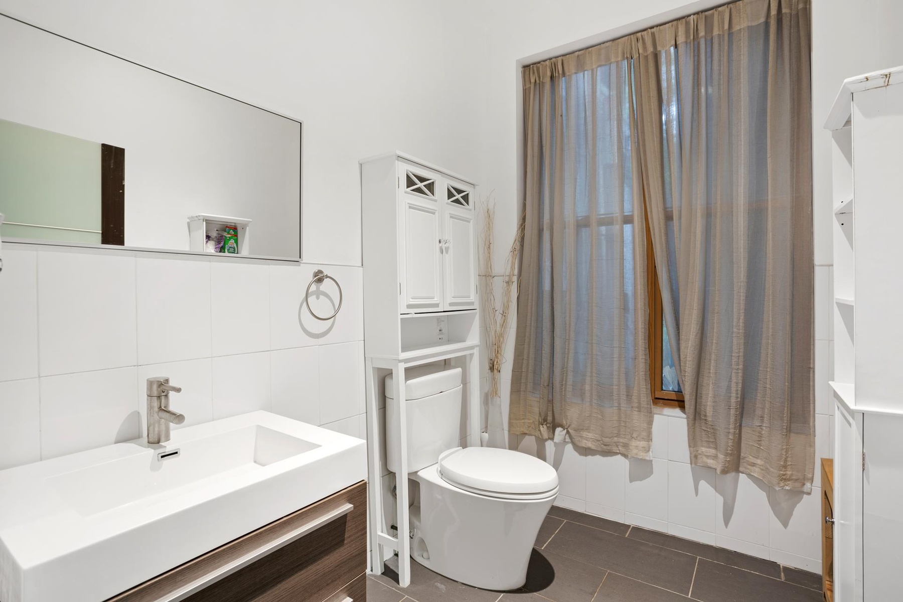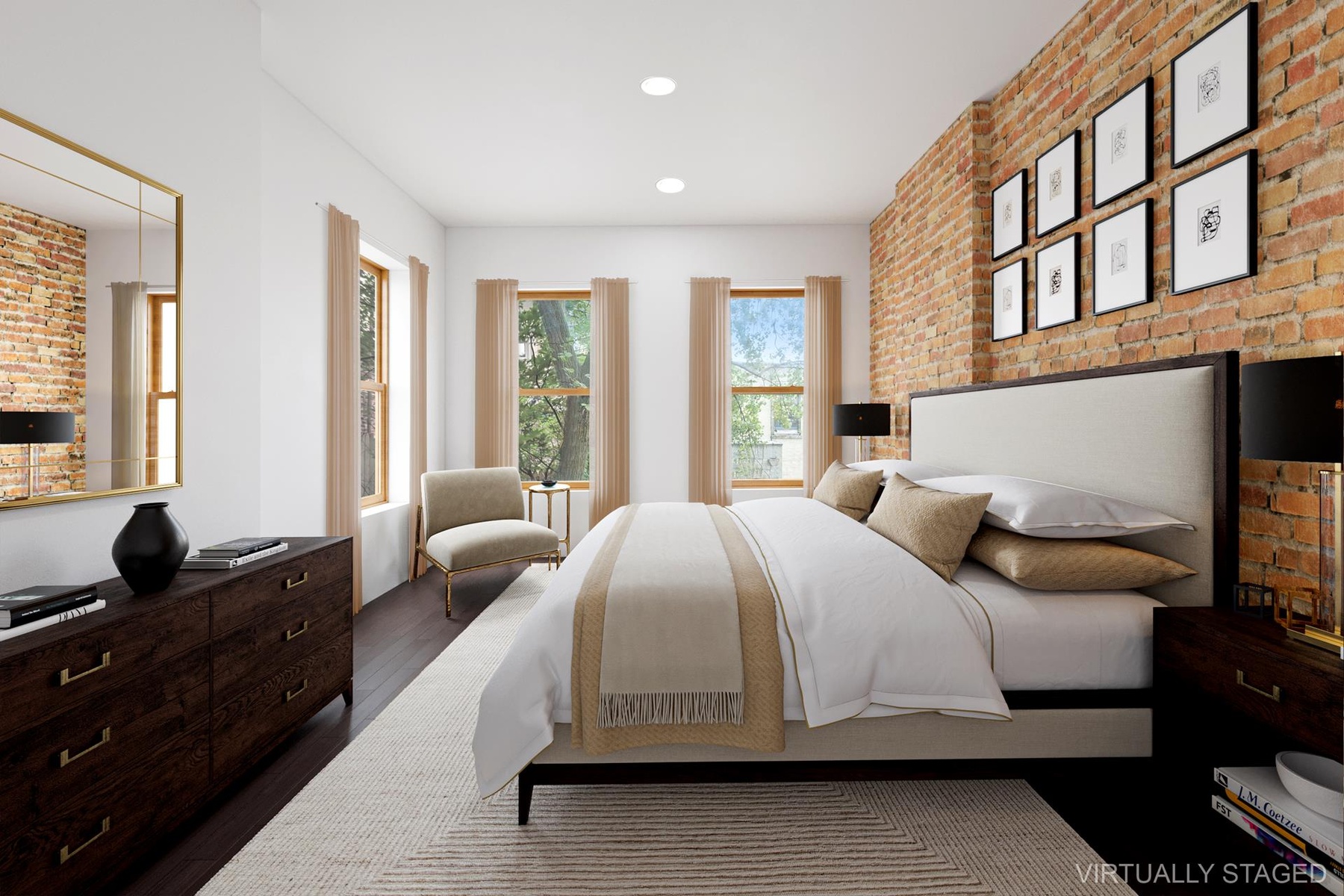 The ground floor presents a two-bedroom, floor-through apartment, encompassing a home office, living room, open kitchen, dining area, and in-unit washer & dryer. Accentuated with 2 patios (one covered), leased at an impressive $3,500/month.The owner-occupied triplex above boasts a large living room, open-concept kitchen, dining space, a covered rear deck with backyard access, a full floor for recreation, three bedrooms, 2.5 bathrooms, a versatile full-floor recreation space with potential for additional bedrooms, generous storage throughout including a pantry and walk-in closets, individually controlled central air on each floor, an in-unit washer and dryer, and a potential rooftop deck with skyline views.