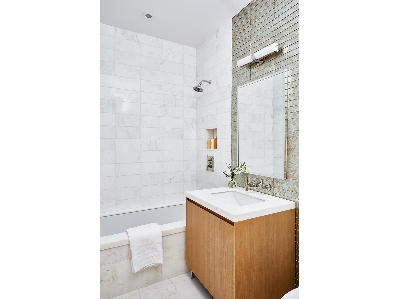 Residence 2G is a light-filled loft studio/convertible 1-bedroom residence with north and east exposure. This 682 square foot home features 5-inch wide solid white oak wood flooring, an abundance of closet space, and custom kitchen designed by Italy-based Minimal. Appliances are top-of-the-line featuring an integrated Sub-Zero refrigerator, Wolf cooktop, oven and microwave, and Bosch dishwasher. This lofty home is enhanced by 10-foot ceilings and floor-to-ceiling windows. A luxurious bath features Lefroy Brooks fixtures, custom vanity by Minimal, and Kohler soaking tub.