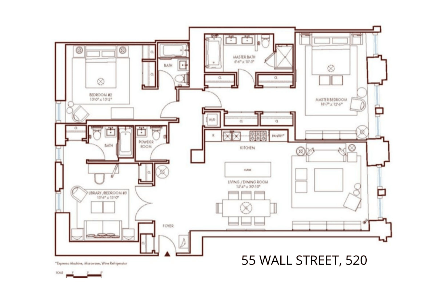 Amazing new low price that will make you take a second look! 55 Wall Street, Residence 520 is a rare offering: a three-bedroom, three-ensuite home with an additional powder room, located on one of the world's most renowned streets, steeped in history, within a coveted condominium that embodies the iconic Classical Beaux-Arts architectural style.
