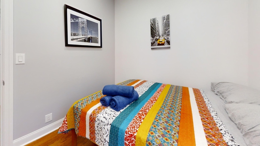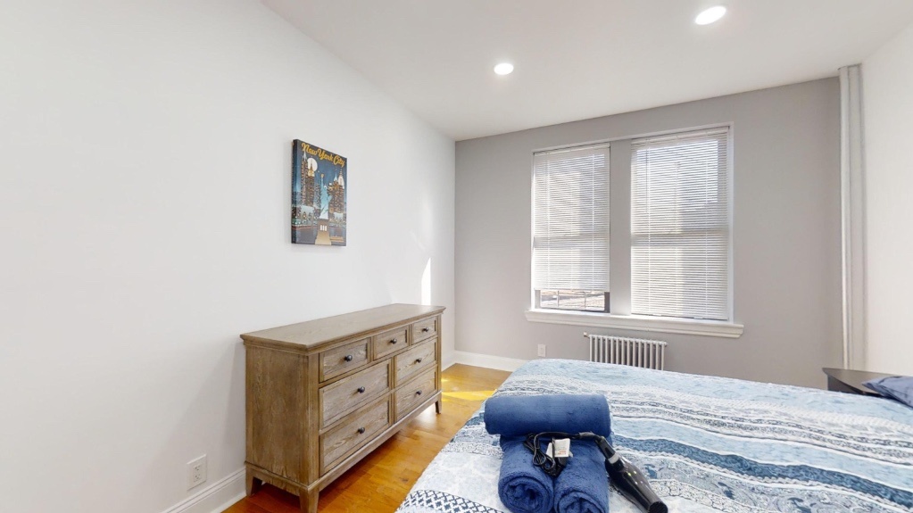 This newly furnished 3-bedroom apartment on 62nd Street in Woodside, situated conveniently between Roosevelt Avenue and Woodside Avenue, offers a spacious, modern setting with everything needed for comfortable living. Each of the three bedrooms is outfitted with a queen-size bed, making it suitable for a group or family, comfortably accommodating up to six people. The living area is thoughtfully designed with a comfortable sofa and a flat-screen TV, creating a cozy spot for relaxation and entertainment.