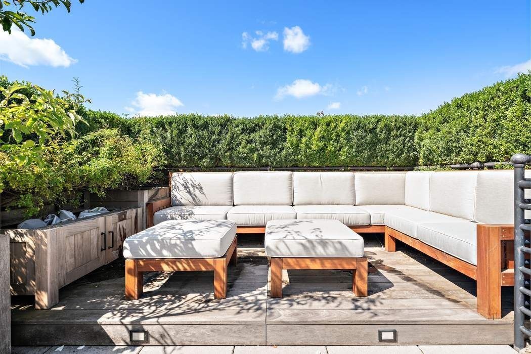 Above, a delightful Rooftop Terrace, accessed by staircase, is beautifully landscaped and equipped with lounging and dining areas, an outdoor Kitchen & shower. From the roof, there are impressive views of the surrounding neighborhood.