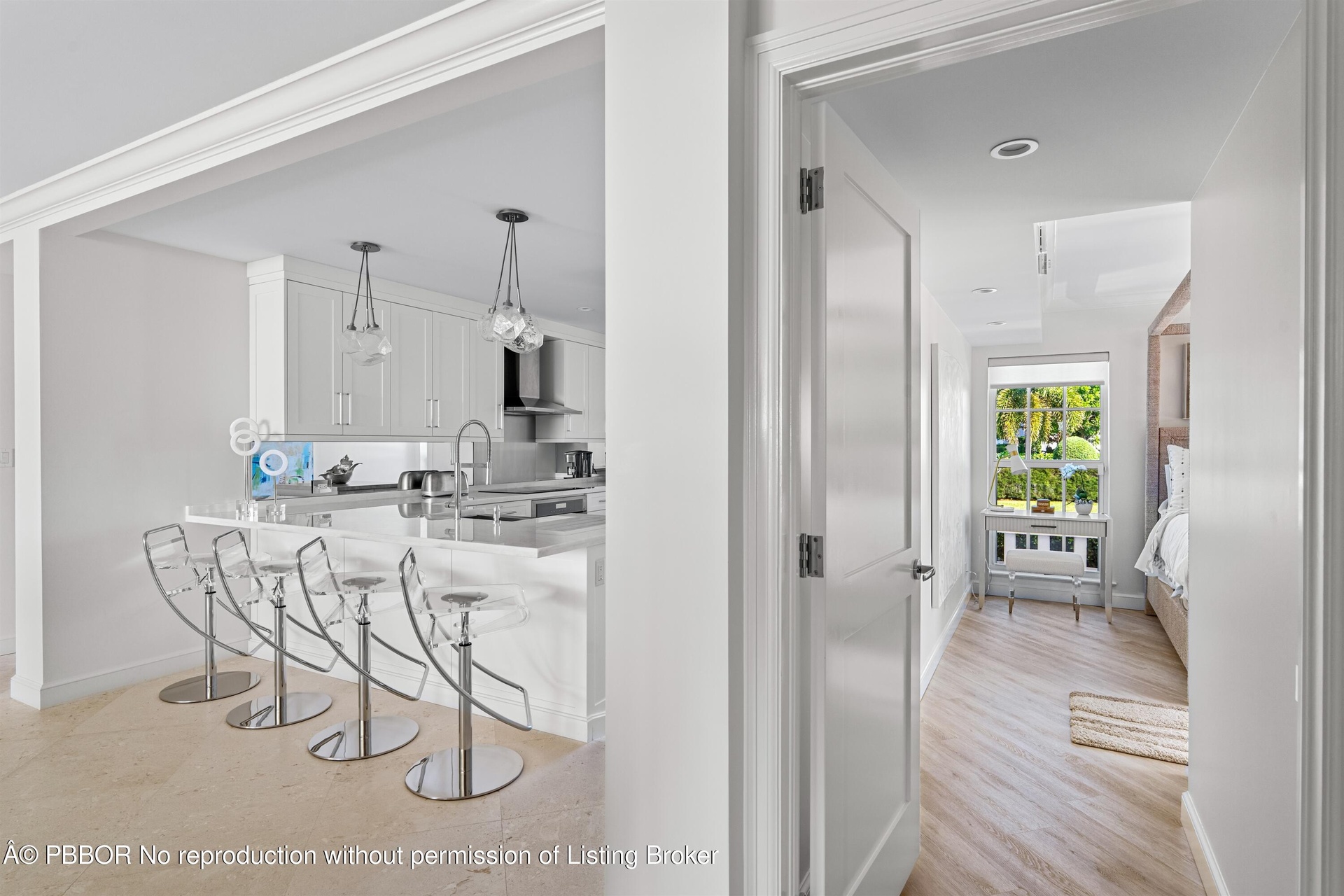 Enjoy unimpeded water and sunset views from this 2BR/2BA first floor corner unit with an open living concept design. This gorgeous home was recently completely gutted and rebuilt with impact floor to ceiling windows and doors in every room, new kitchen, new baths, new coral tile floors, and new hide-a-way Bluetooth blinds throughout. Exquisite finishes include Gracie hand painted wallpaper, elegant kitchen with under-lit counters & top of the line all new Thermodor appliances plus marble bathrooms with custom floating vanities. Villa Serein condo complex living uniquely boutique with only 2 stories high and 8 units. Sold beautifully furnished right down to the dishes, flatware, pots, pans and bed linens too! All brand new. exceptional antique pieces and modern contemporary. This brand new apartment is ready for immediate occupancy.