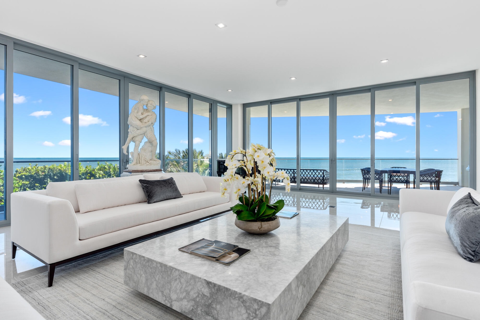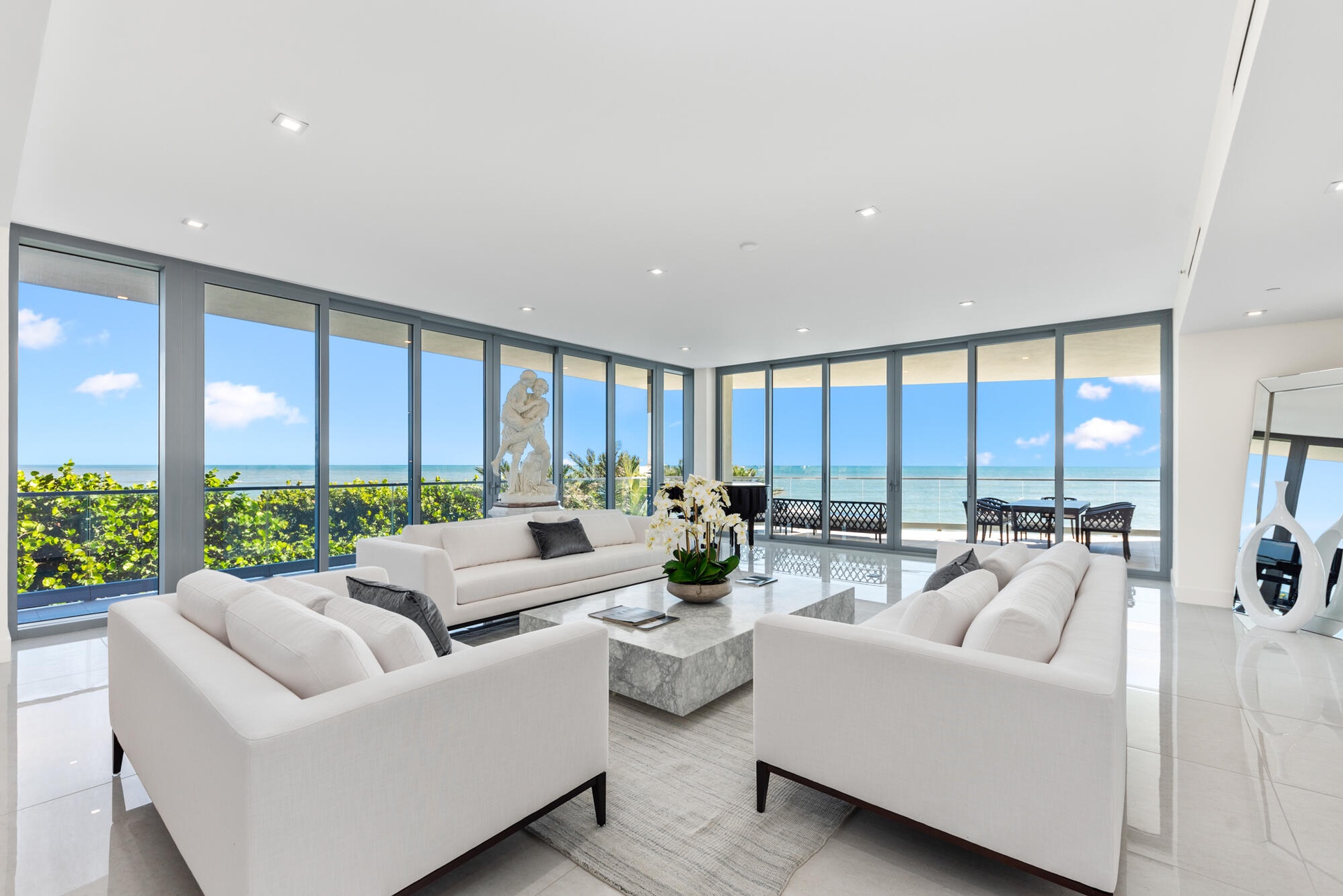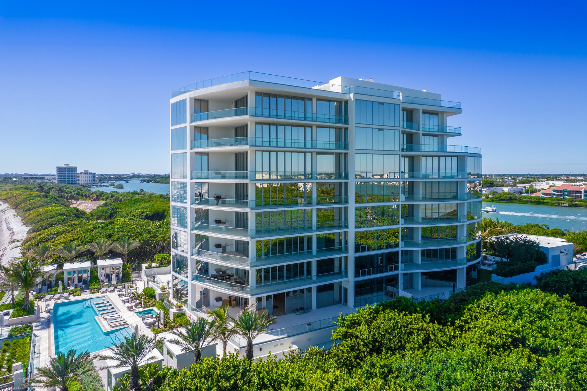 Exceptional opportunity to own this luxurious designer residence at the prestigious SeaGlass Condominium on Jupiter Island offering sweeping, uninterrupted ocean views.