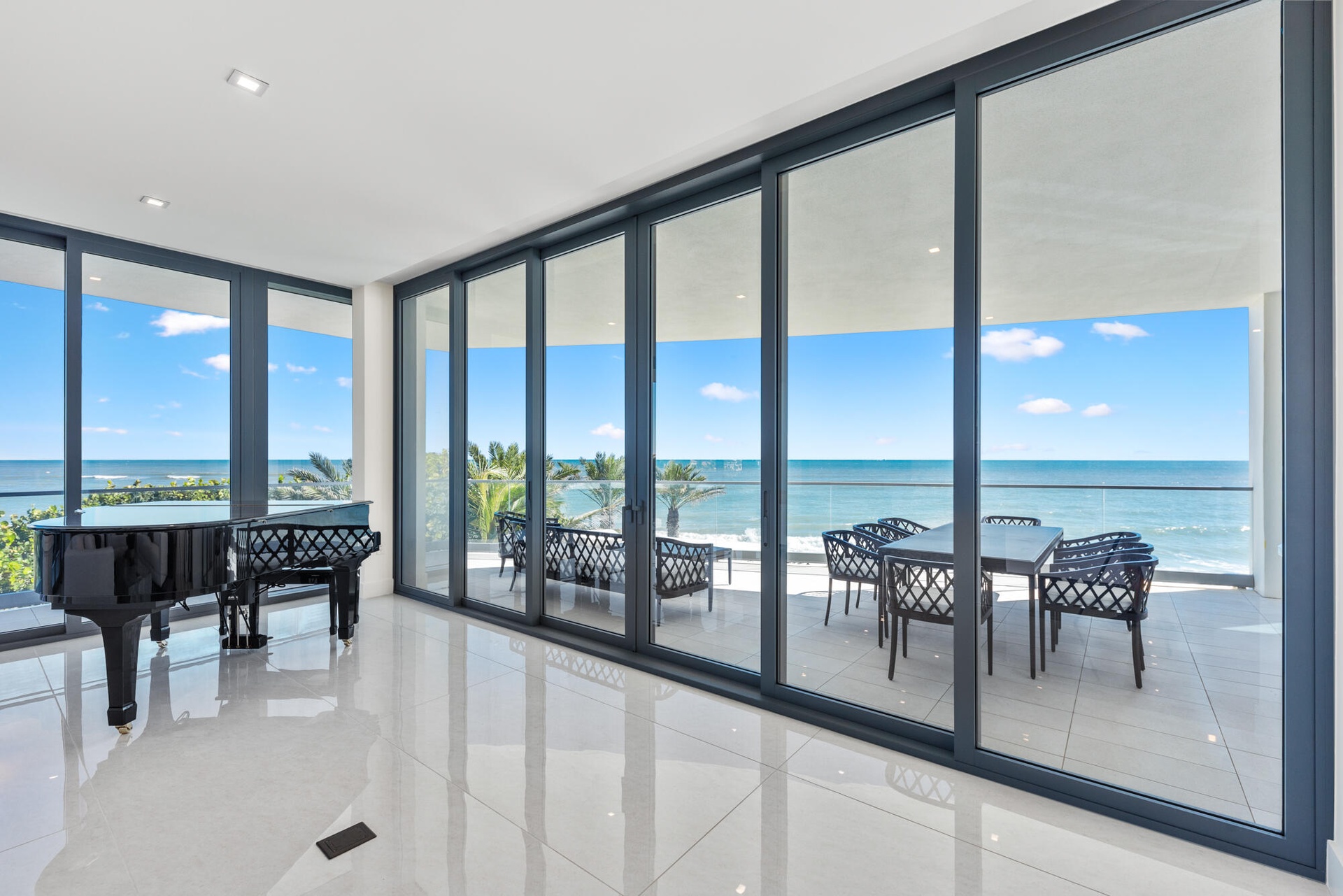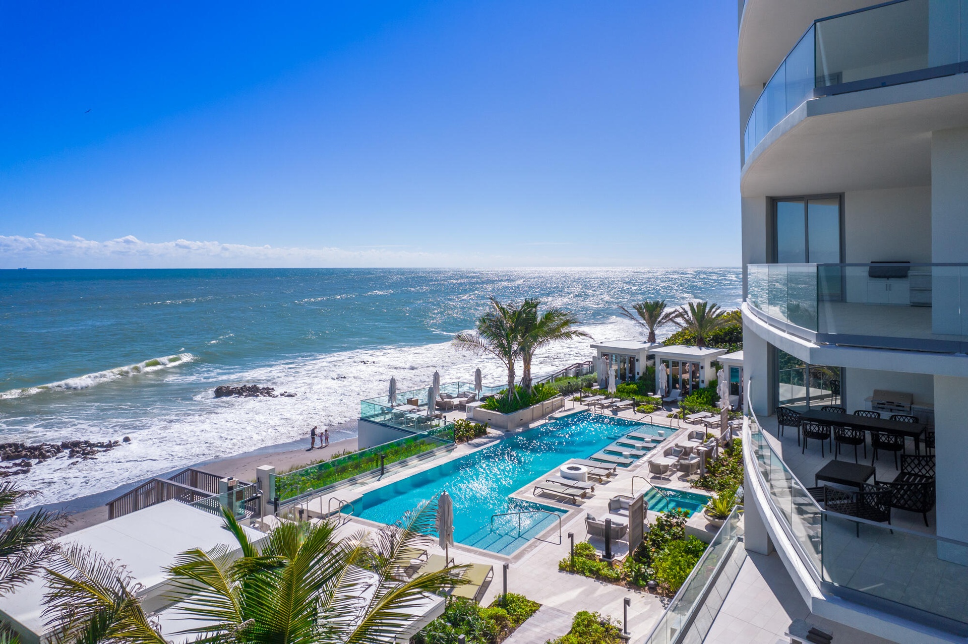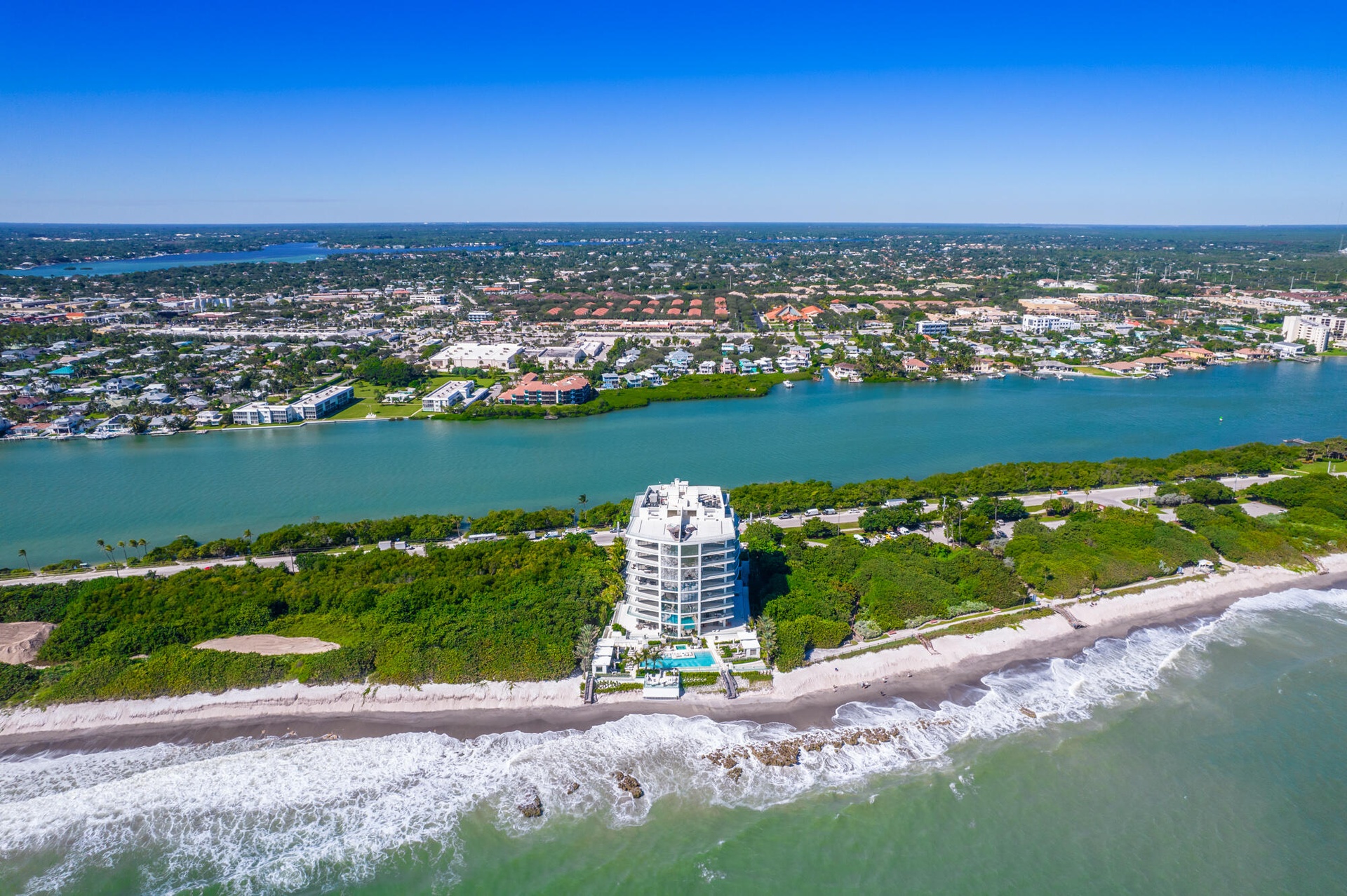 Exceptional opportunity to own this luxurious designer residence at the prestigious SeaGlass Condominium on Jupiter Island offering sweeping, uninterrupted ocean views.