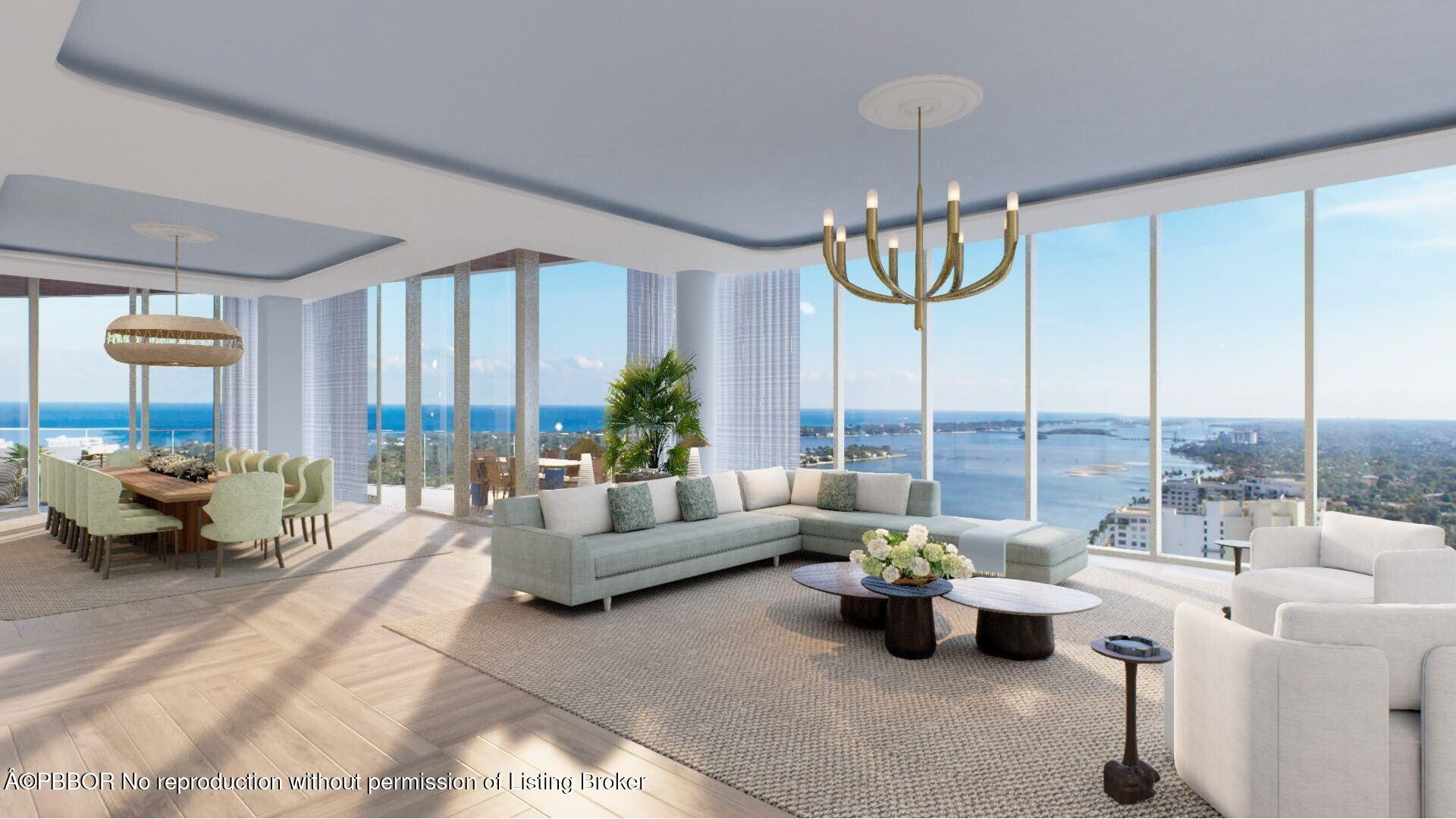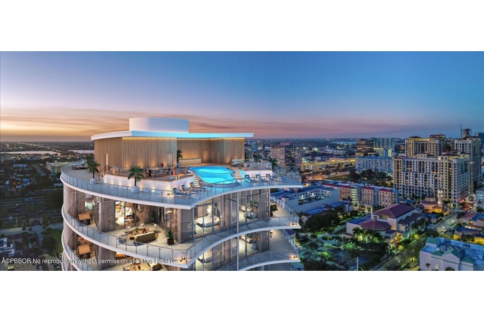 Spectacular Waterfront One-of-a-Kind Penthouse Condominium designed by Jean-Louis Deniot - Two full floors of customizable perfection, soaring ceilings, and walls of glass revealing sweeping views of the Intracoastal, Atlantic Ocean, Palm Beach Island, and West Palm Beach from every principal room. Top floor features private rooftop swimming pool, 360-degree wraparound balcony, fabulous outdoor kitchen, and cabana bath with dressing area, steam shower, and sauna. With 18,000+/- square feet of indoor and outdoor living space, this extravagant, designer-ready Penthouse is primed for interior customization. The first-floor features 9,000+/- indoor square footage with an additional 1,800+/- square feet of outdoor living and dining areas. A sculptured staircase connects the two floors, along with a private elevator. Custom interior allows for the option of 4 to 8 bedrooms and a variety of designs. The iconic new Forté on Flagler building will feature three full floors of opulent amenities. Fantastic downtown location just blocks from CityPlace, Palm Beach Island, and so many shops and restaurants.