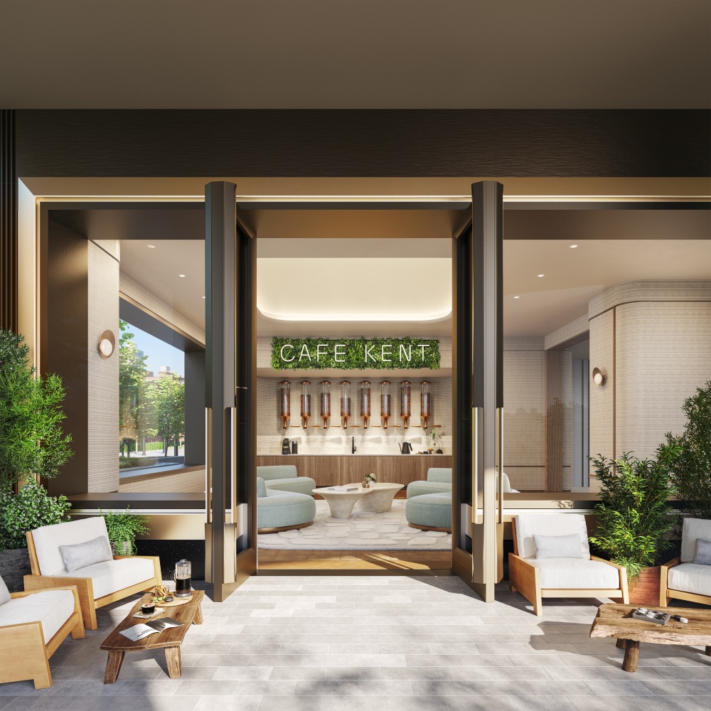 Resort-style, hospitality-driven amenities are designed by Ward & Gray. From the custom library, children's playroom, and pet grooming stations to the private cinema and exclusive Williamsburg Wharf Resort and Recreation Club, there is something for every lifestyle. A landscaped porte-coch re leads into a welcoming 24-hour attended lobby. Co-working lounges feature private phone booths and a wet bar. Entertaining spaces include a lounge, dining room, pantry, kitchenette and a 9th floor terrace with a summer kitchen fire pit. Car parking and storage are available for purchase.
