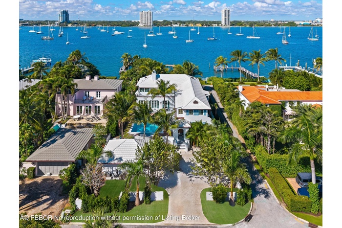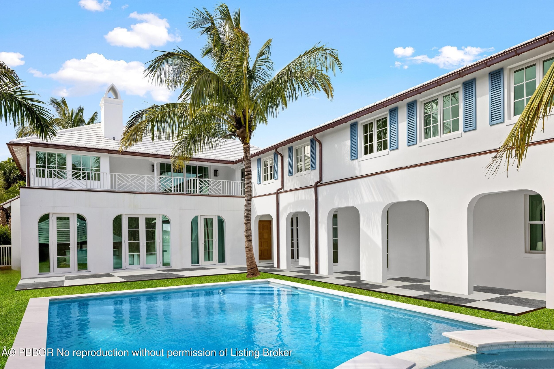 Spectacular Newly Completed Lakefront home with deep water dock and access to the Lake Trail. With spectacular views of the Intracoastal, this stunning home has been beautifully restored and features 5 bedrooms, 7 bathrooms, 1 powder room, and over 6,800 total square feet. Fabulous courtyard pool area perfect for outdoor entertaining with covered loggia, expansive patio, salt-water pool, and spa. Interior highlights include formal dining room, fabulous eat-in kitchen, media room, and den. Beautiful Primary Suite with dressing room, large bath with dual sinks, and breathtaking views. Additional features include lush tropical landscaping, 2-car garage, multiple balconies, and charming entry portico.