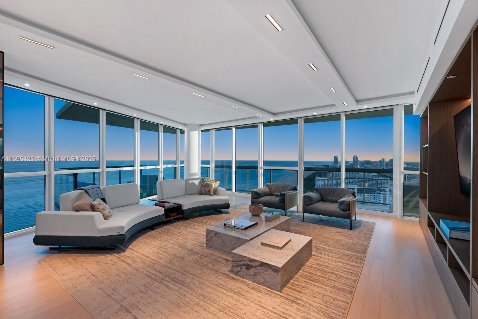 Step Inside With Me! This iconic Setai Skyhome unveils to a 63’ oceanfront main salon with stunning sitting room and TV lounges. Spanning over 6,000 SF, this 4-unit combination floorplan represents the 2nd largest residence in the building where every social area & bedroom offers endless views. The custom reconfiguration includes white oak floors, sleek modern kitchen, tray ceilings, wood paneled millwork, Lutron automation, and marble baths with heated floors. Entertain in style at 2 bar settings and a world class oceanfront 3-row theater. Epic downtown skyline vistas and sunsets are afforded to the dining & family rooms as well as glass encased study/5th sleeping quarter. In the heart of Billionaires Beach, the 5 star Setai offers 3 restaurants, known spa & beach for celebrity sightings.