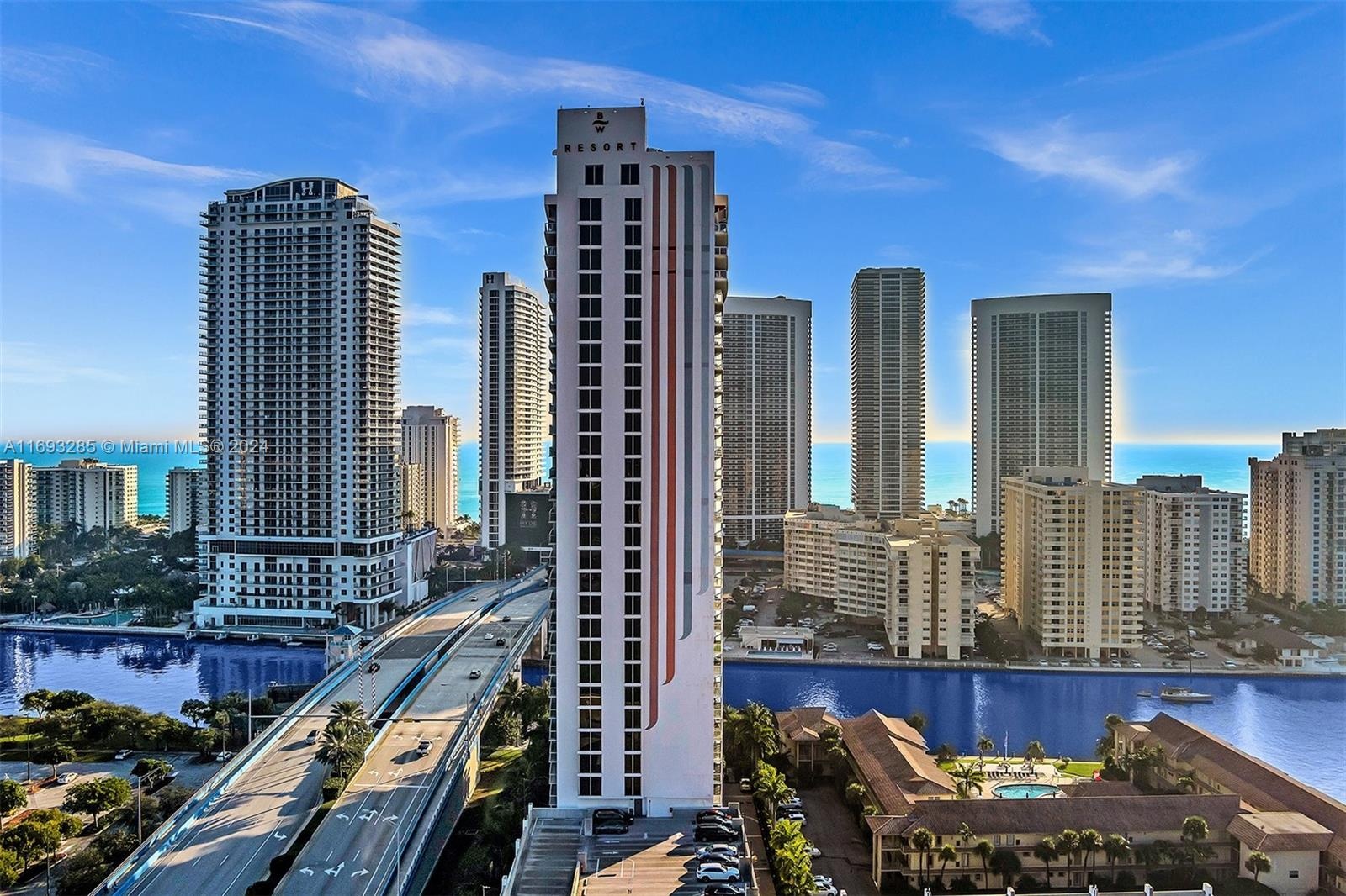 This stunning unit offers breathtaking views of the ocean & Intracoastal Waterway. Featuring tile flooring throughout including the balcony, it boasts upgraded amenities such as smart tv's, along with a brand-new washer and dryer for your convenience. The unit has two separate entrance doors, allowing it to be converted into two apartments for independent rental. Unit A features 1 bedroom and 1 bathroom, while Unit B is a fully equipped studio. Daily rentals are permitted, making it an excellent investment opportunity. The resort offers valet parking, a complimentary shuttle service to Hallandale Beach and Hyde’s Resort Club, a fitness center overlooking the Intracoastal, and a private rooftop infinity pool. Maintenance covers electricity, internet/cable, water, and all resort amenities.
