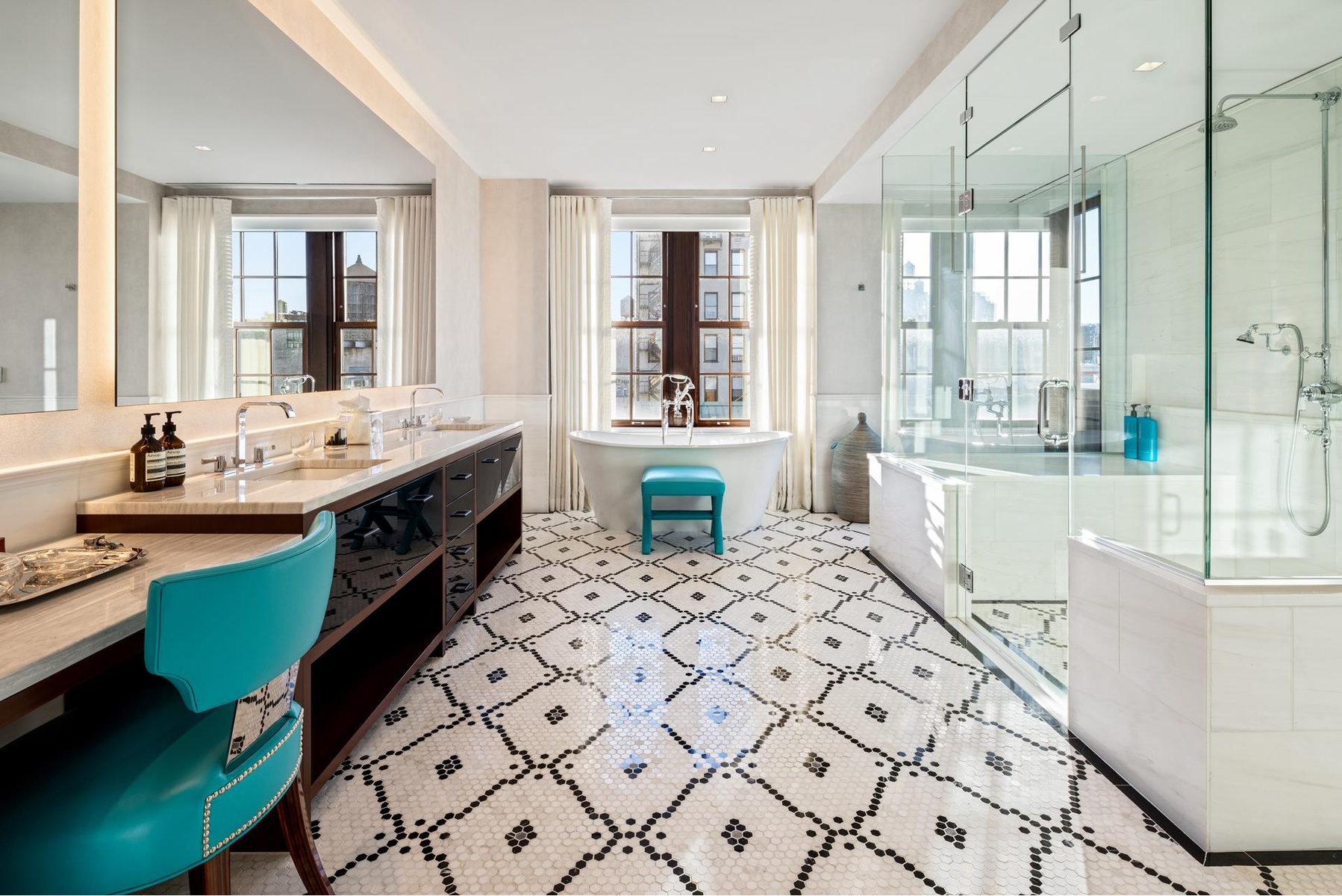 The Penthouse at 224 Mulberry is a custom, one-of-a-kind duplex residence crowning one of downtown Manhattan's premier full-service boutique pre-war condominiums. This extraordinary residence boasts approx. 5,646 SF of vast interior living and entertaining space, with over 985 SF of private outdoor space, offering a rare combination of scale with 360 degrees of open views and light. This exceptional penthouse with ceiling heights up to 11'3" has four bedrooms with ensuite bathrooms, a powder room, two fireplaces and four private terraces. There are 2 deeded parking spaces and a keyed storage room on the cellar level that are included with the apartment.