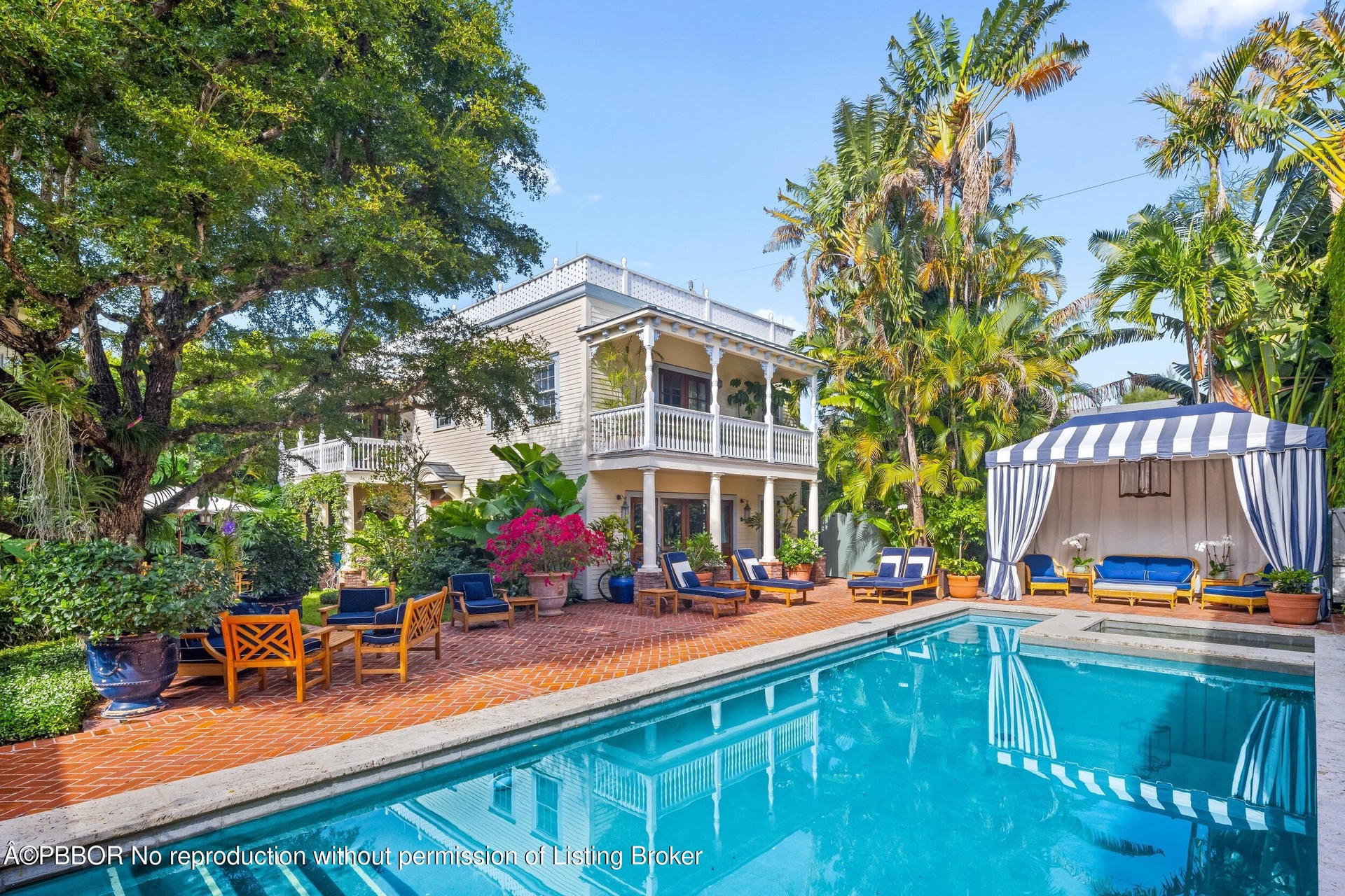 Welcome to Buttonwood - Beautiful and historic In-Town property with 8BR/9BA on oversized 19,600+/- SqFt lot. Private driveway leads to welcoming and charming front porch with ample seating. Stunning architectural detailing and hardwood flooring. Two beautiful fireplaces in the formal living room and family room. Romantic sunroom with sweeping ceilings. Elegant formal dining room opens to stunning patio. Additional highlights include beautiful library, study, mudroom, and beautiful kitchen and butler's pantry. Fabulous 4BR/4BA guest house with living room, kitchen, two covered balconies, and two covered patios. Stunning backyard with 40' pool and spa. Gorgeous, mature landscaping surrounds this 195'x100'+/- property. Fantastic Dunbar Road location with Lake Trail and Beach access.