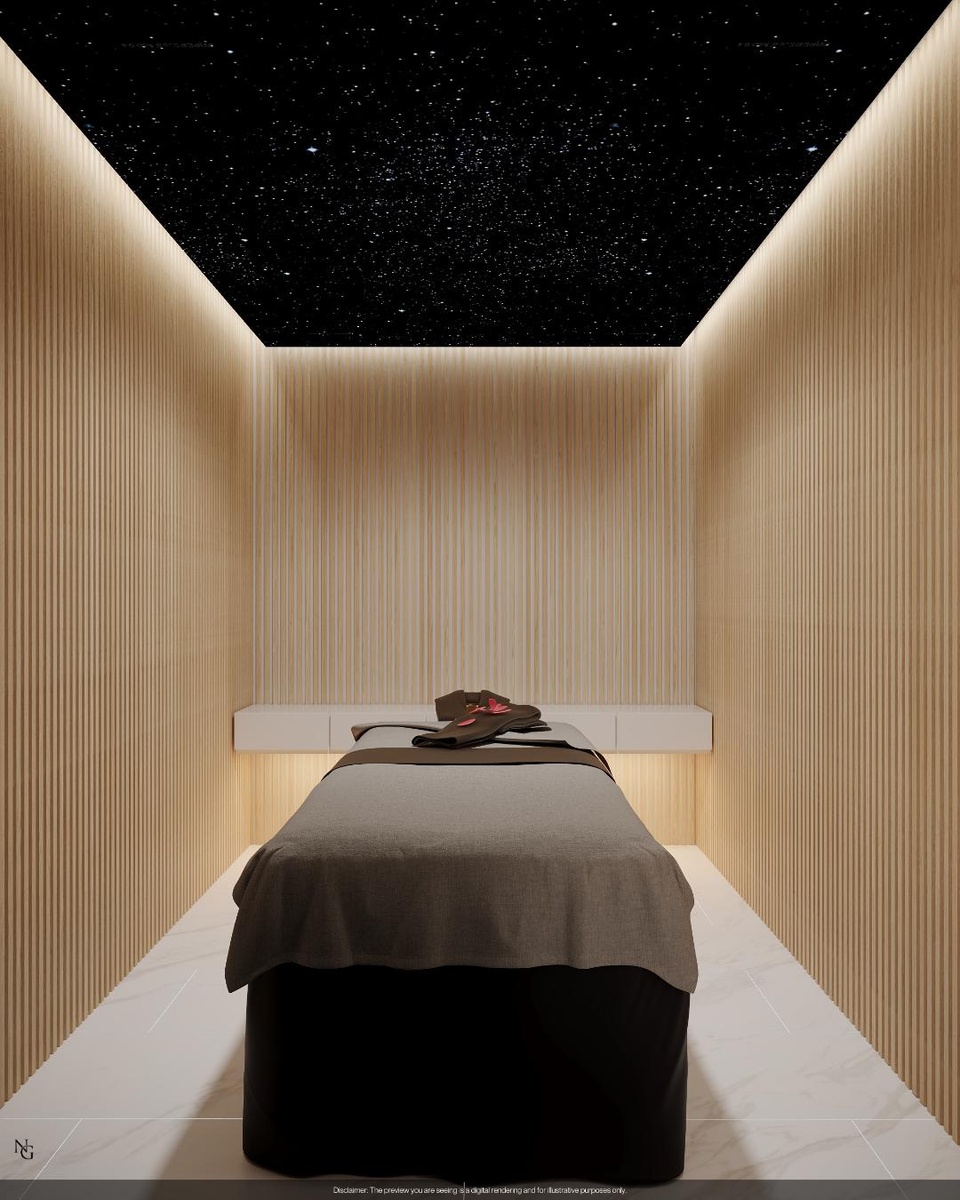 Adding an element of elegance & sophistication, a dedicated wine lounge serves as the perfect gathering space. Custom-built cabinetry discreetly houses a TV & a full bar ensures added convenience for entertainment and relaxation.