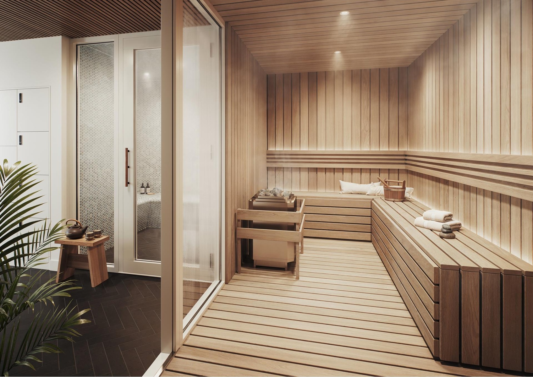 A PLACE OF COMFORT Second-to-none amenities in a one-of-a-kind building. Smithsonian Place is where work, rest, and play come together. A doorman to welcome you home, a double-height fitness studio equipped with Peloton bikes and treadmills, Tonal machines, and a mezzanine-level yoga and Pilates zone equipped with sauna and steam rooms, private video call and podcast meeting rooms, light-filled resident's lounge with seating around a stone-set feature fire, game room, playroom, bicycle storage, a dedicated pet wash area, and at an additional cost private storage is available.
