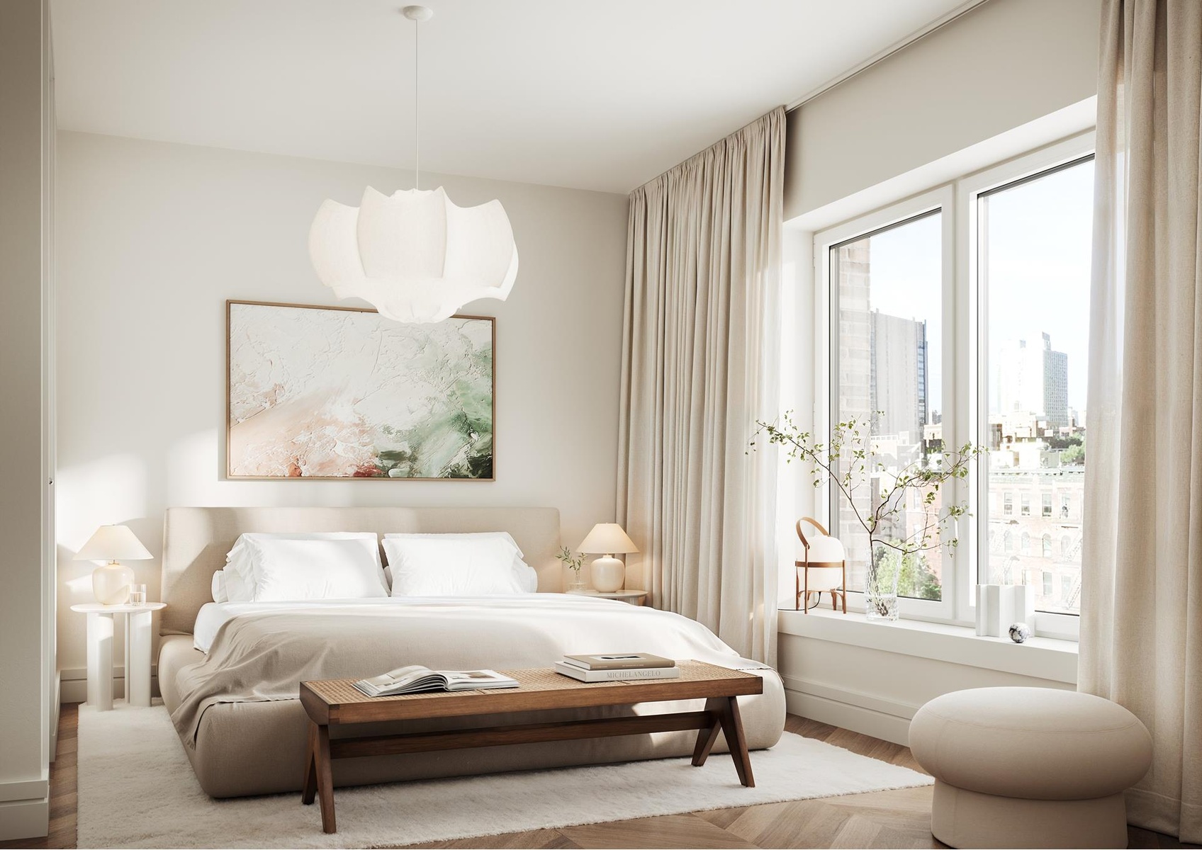 A PLACE WITH CRAFTSMANSHIP Crisp detailing and calm colors merge effortlessly with the warmth of the late 19th-century architecture. Natural materials like stone and timber create a tranquil canvas for life. Expansive double-glazed casement windows saturate each home with natural light, typical ceiling heights from 9 to 10 feet, white oak hardwood flooring and fitted bedroom closets and washer/dryer cabinets.
