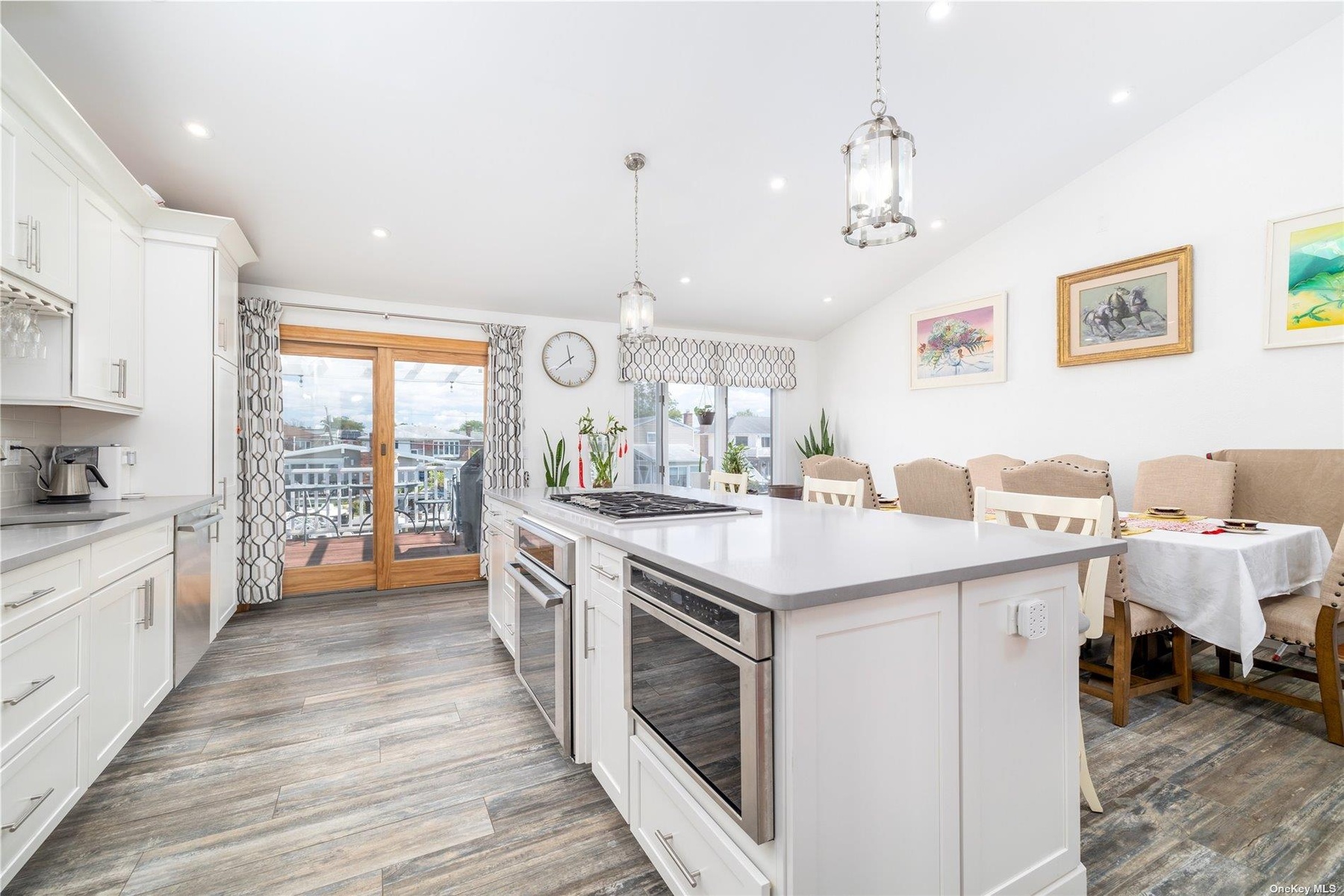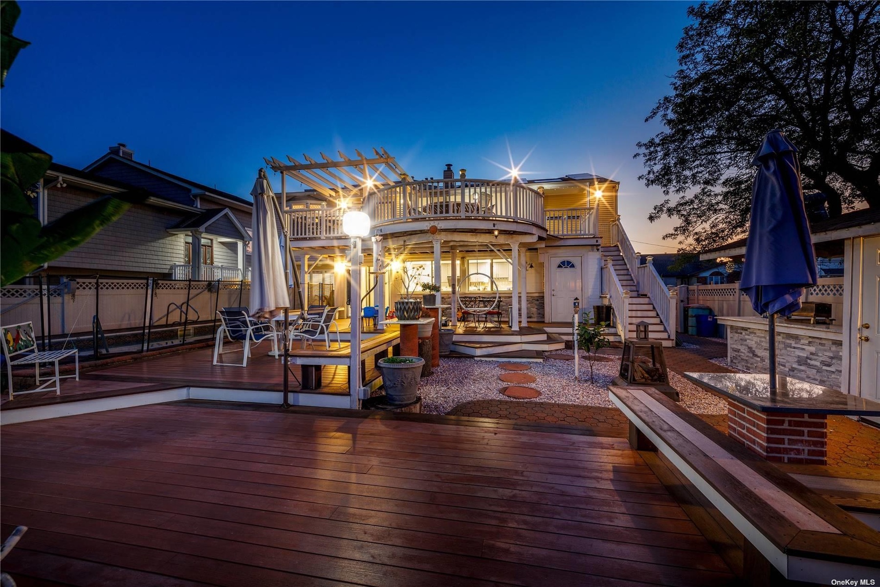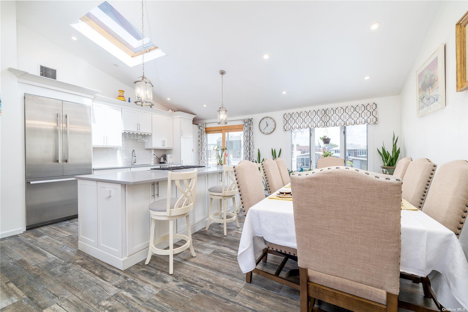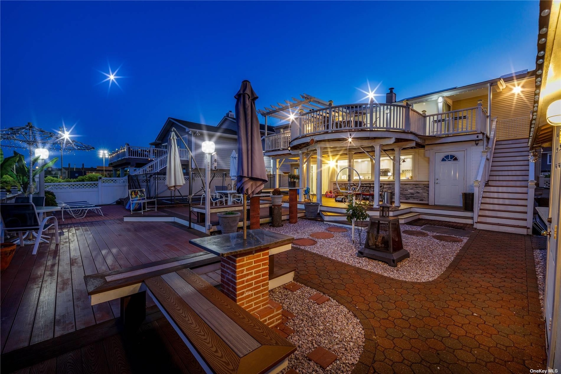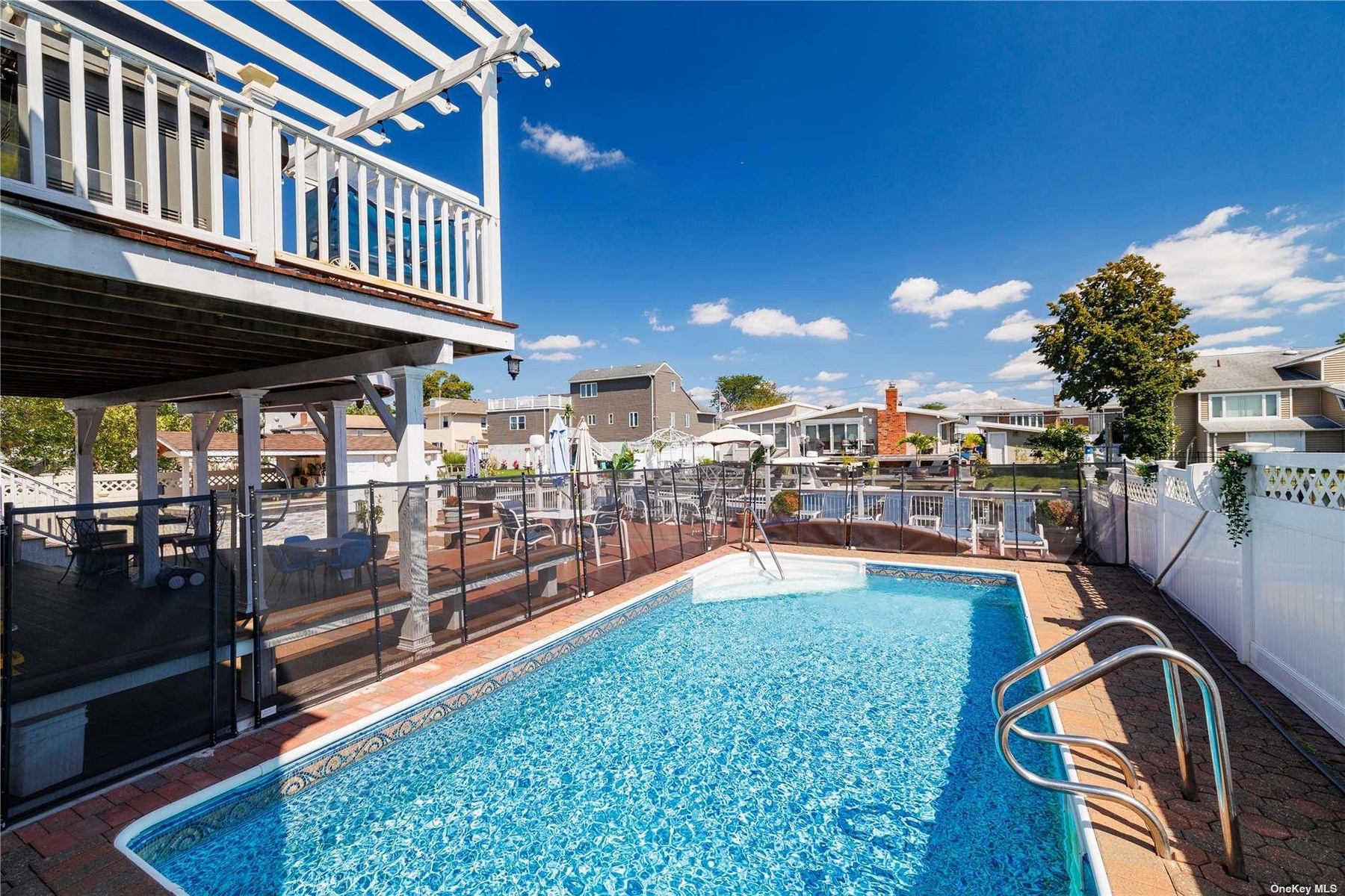 Introducing This Oceanside Waterfront 4 Bedroom 3 Bath Wide-line Stucco Contemporary Hi Ranch. Features Include a Second level Formal Living Room with Built In Cabinetry. A  Dining Room and New Chefs Eat In Kitchen with a Cathedral Ceiling and Skylights, Center Island, White Shaker Cabinets, Stainless Steel Appliances, Quartz Counter Tops and Sliders To an Upper Deck. The Master Bedroom Boasts a Private Bath, Walk In Closet & Sliders To a Screened Porch and the Upper Deck. Lower Level Features a large Bedroom, a Full Bathroom 2 Car Garage and a Den with Sliders To a Your Private Yard & In Ground Heated Pool & Private Dock. Solar Panels, 150 Amp Electric, Transfer Switch & 2 Car Paver Driveway On Quiet Dead End Street.,