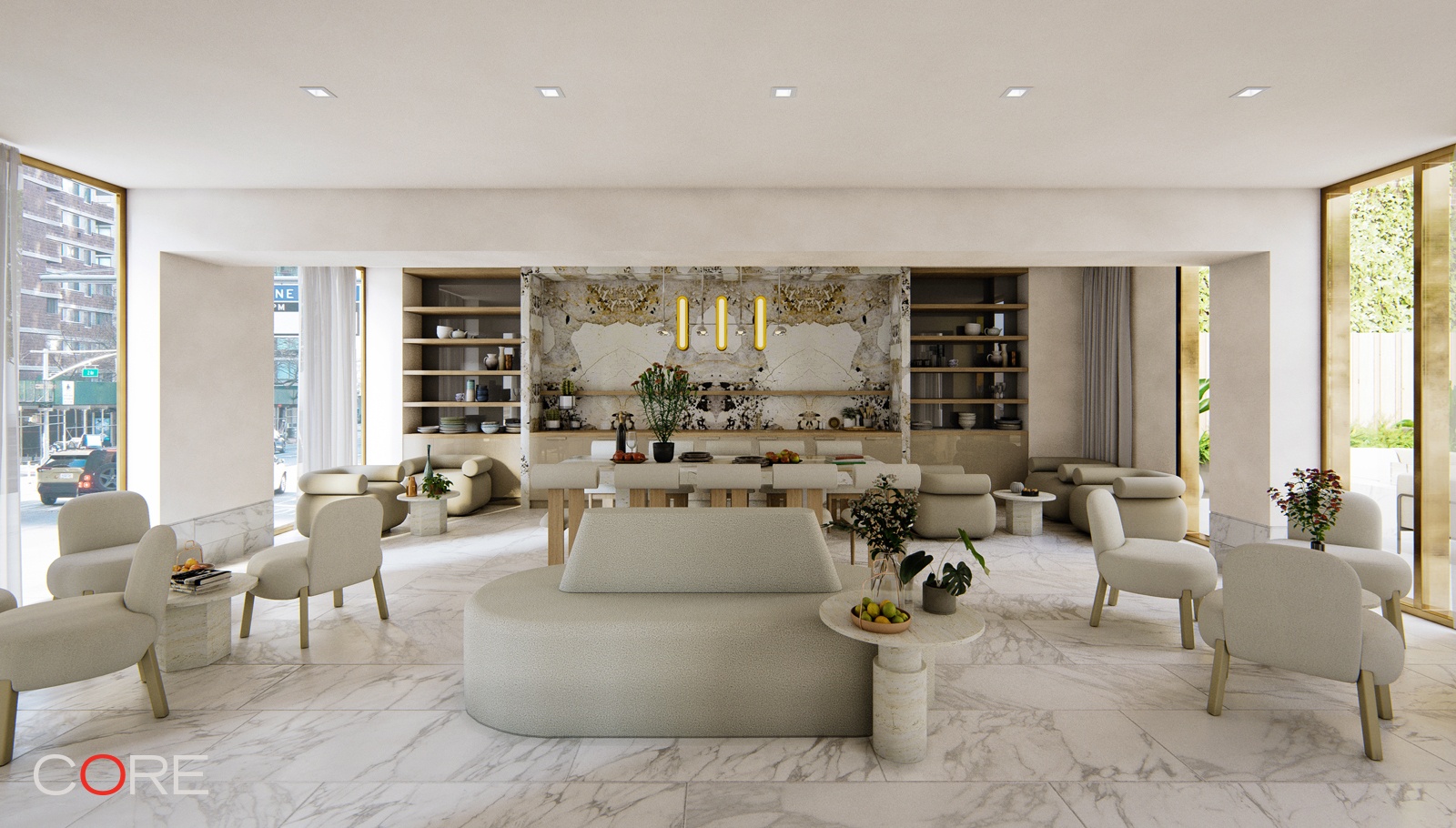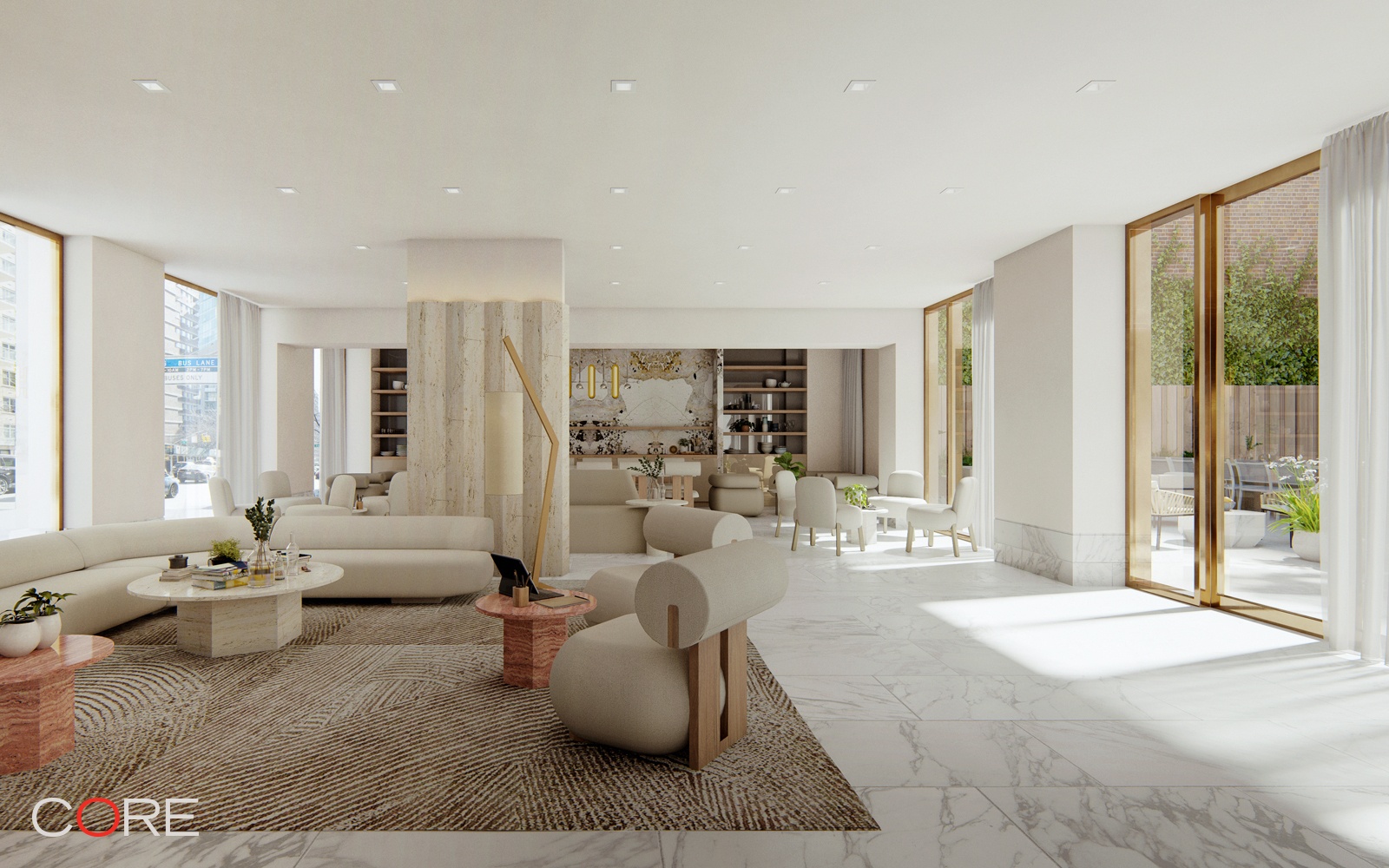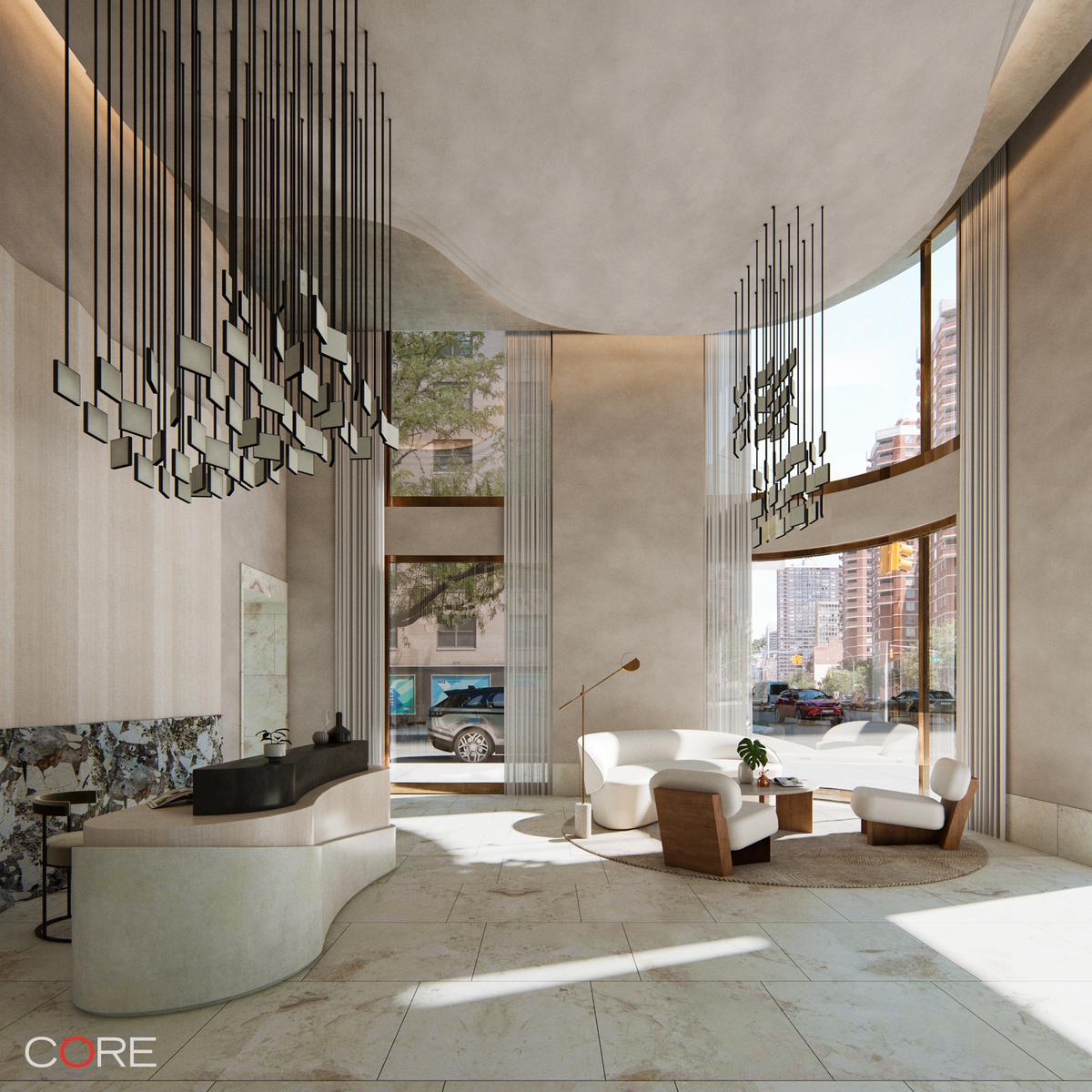 The double-height lobby welcomes you into a world of elegance, leading to the resident lounge and a beautifully landscaped courtyard with outdoor seating. Here, residents can socialize, relax, or entertain in style, both indoors and outdoors. Descend the spiral staircase to find the state-of-the-art fitness center with cardio machines, free weights, and a private yoga studio. The wellness spa is adjacent to the fitness center, complete with a steam room and sauna, featuring slip-free teak flooring, a cool-off shower, and towel service. Additionally, residents can enjoy a landscaped rooftop terrace equipped with barbecues, lounge chairs, and dining areas.