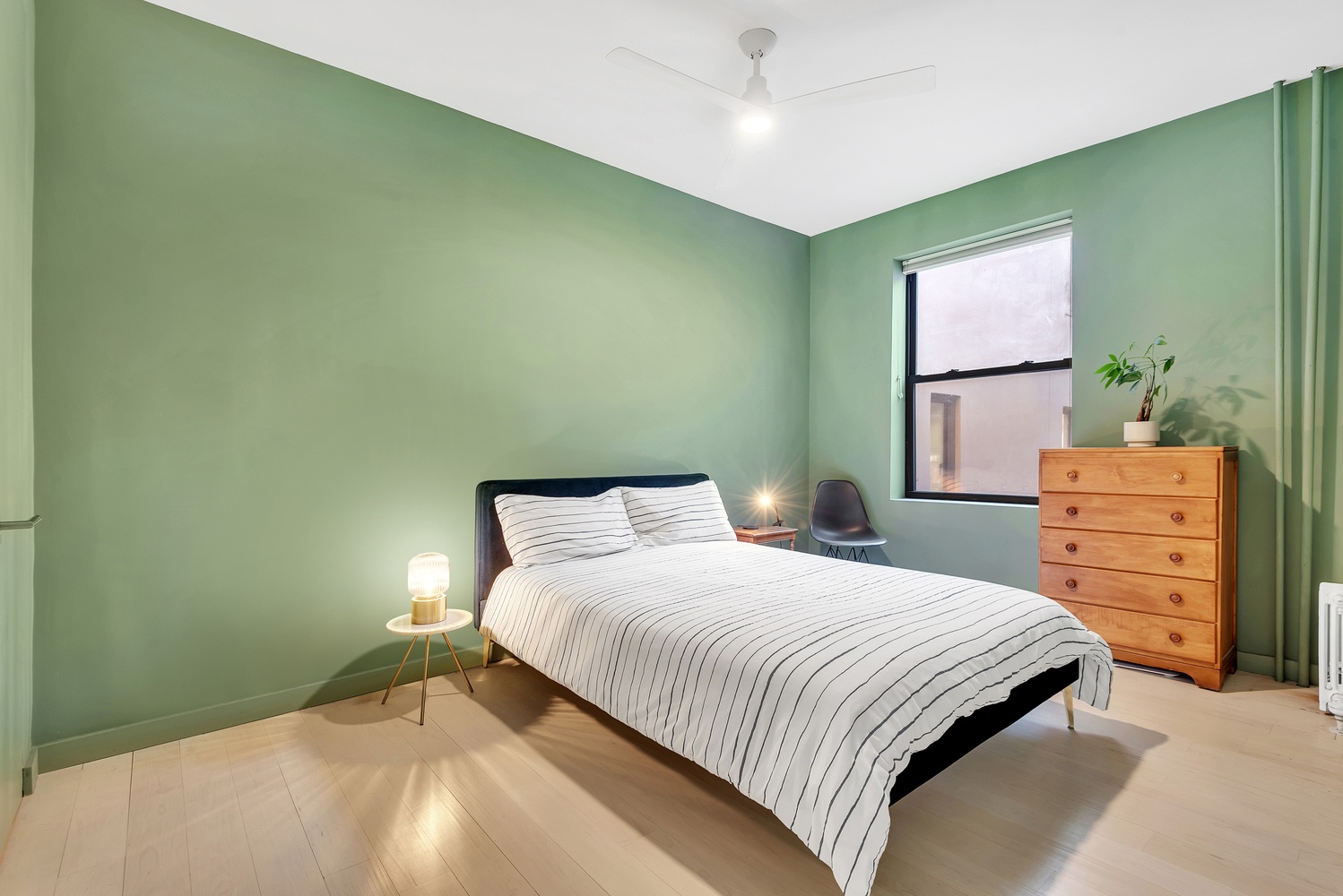 The renovated, windowed kitchen boasting new appliances, custom cabinetry and expanded pantry storage is the perfect blend of style and functionality. Both the primary and second bedroom are large enough to accommodate king-sized beds, side tables, and even a desk for work-at-home needs. Completing this stunning home are the gorgeously renovated windowed bathroom, hardwood floors, high ceilings, built-in bookcases/storage and re-built custom closets. This exceptional residence exudes warmth and comfort making it an ideal sanctuary in a coveted, vibrant neighborhood.