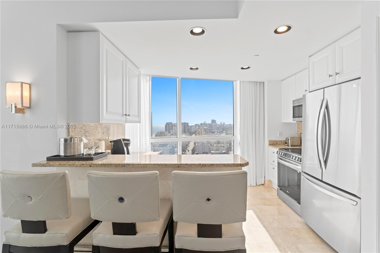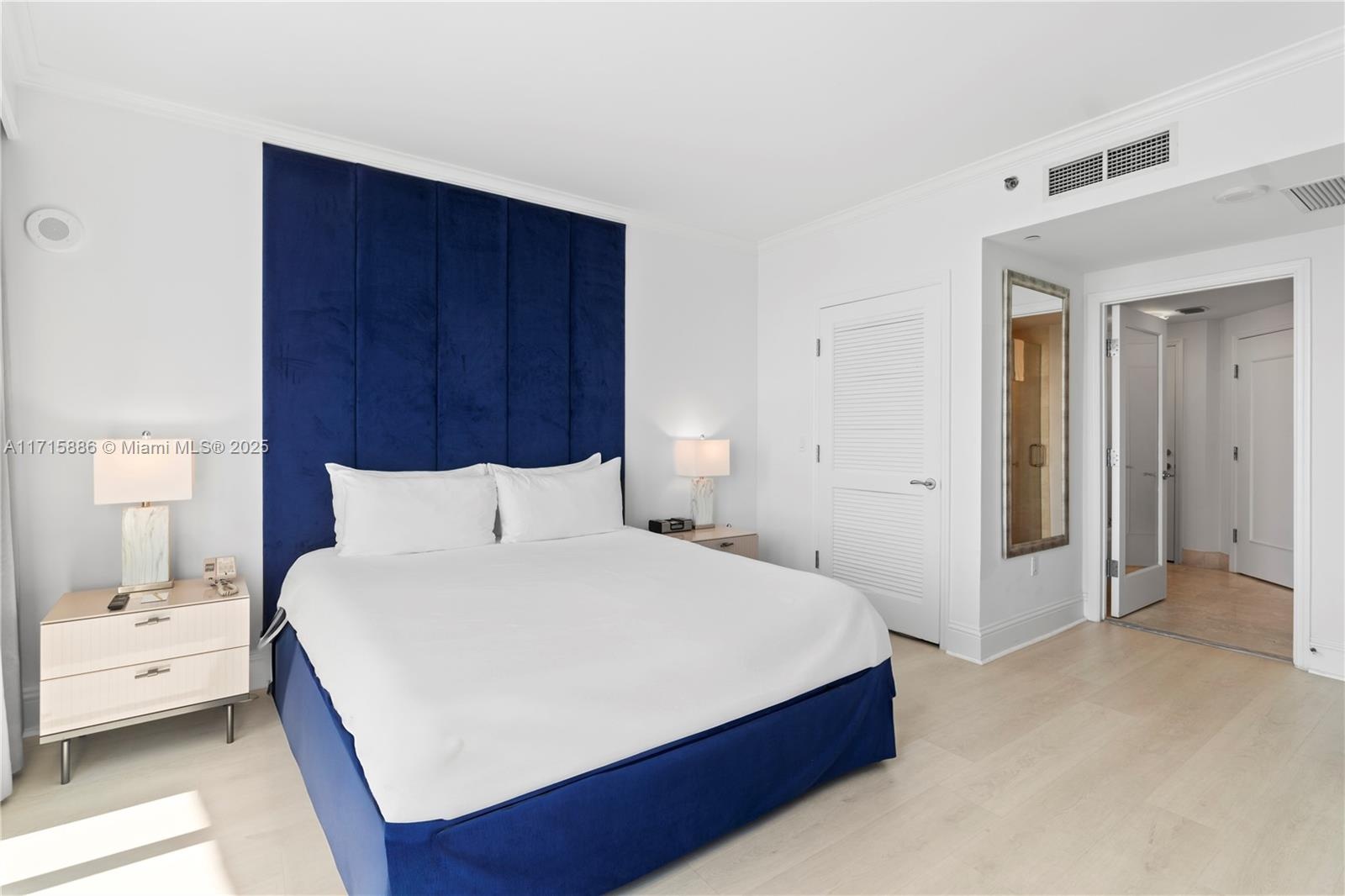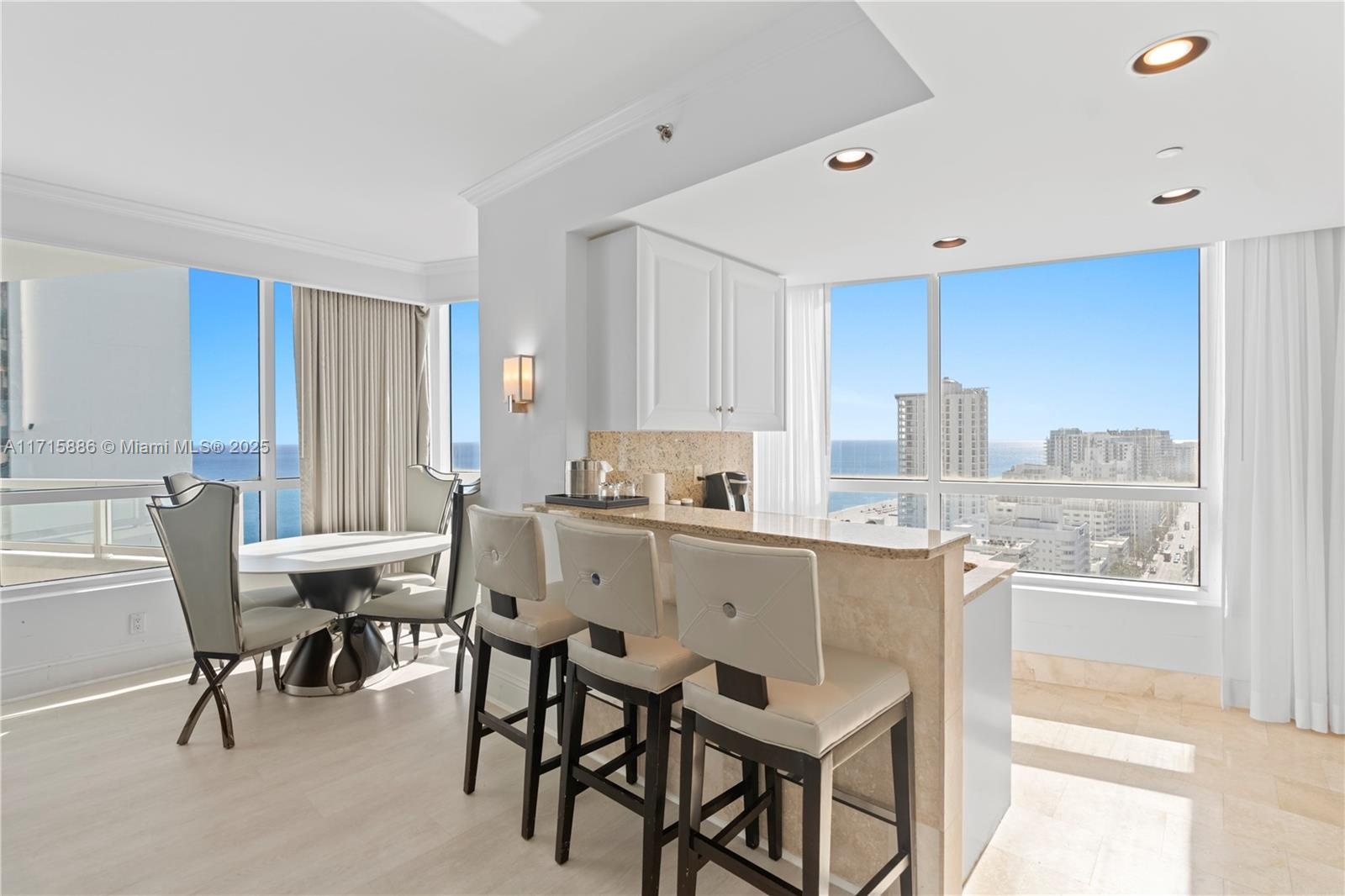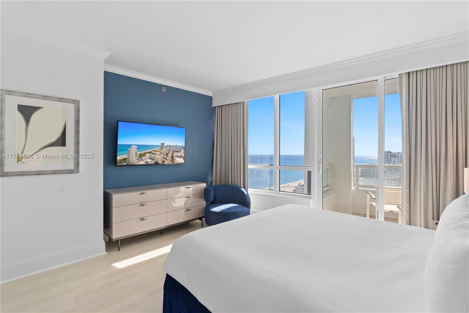 Stunning southeast corner 1 bedroom, 2 bathroom residence at Fontainebleau II, featuring beautiful ocean and city views.