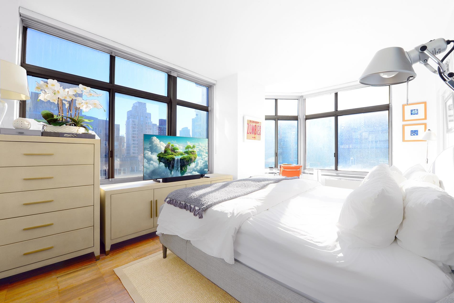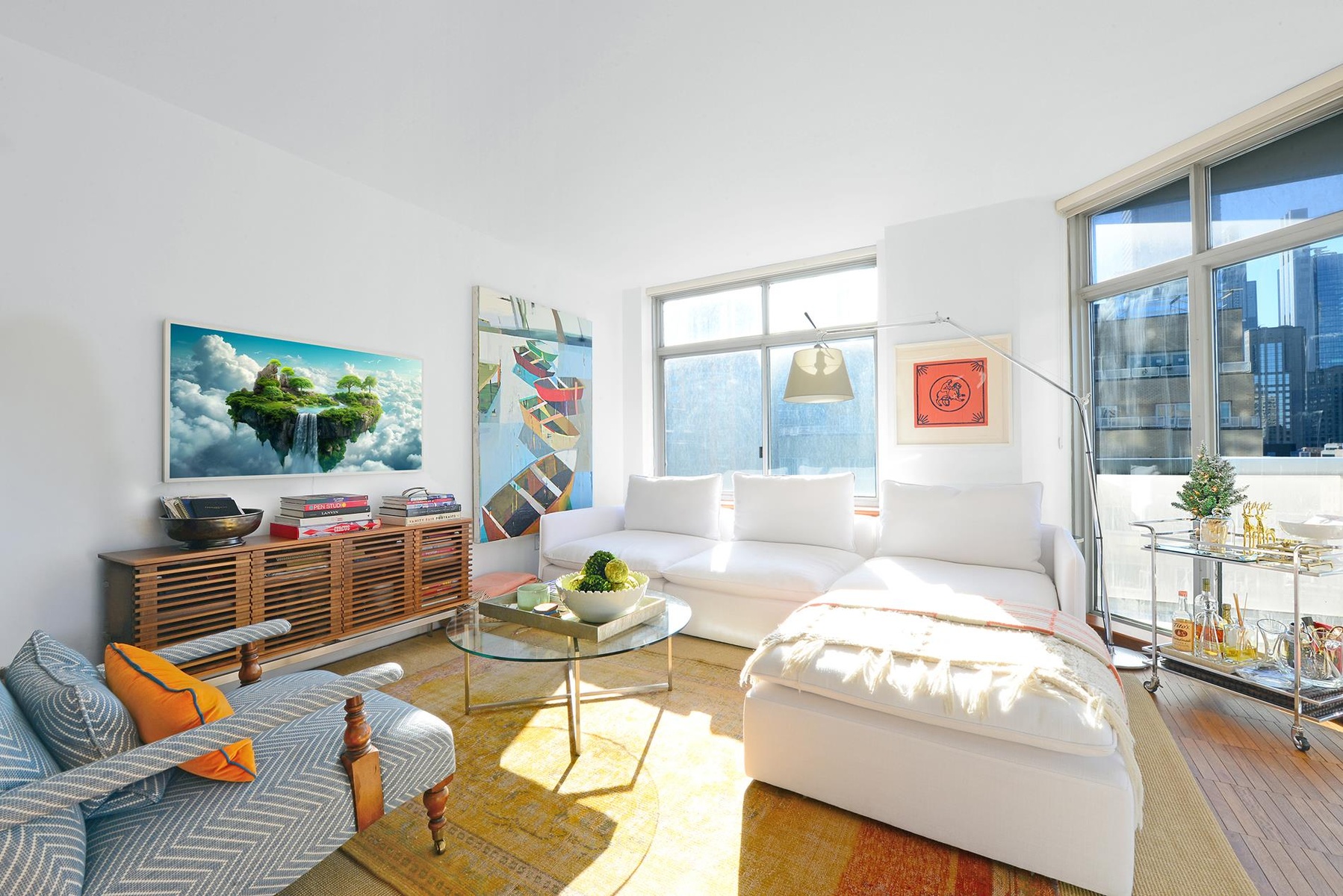 The apartment also includes motorized shades and a laundry room with washer and dryer on the same floor.