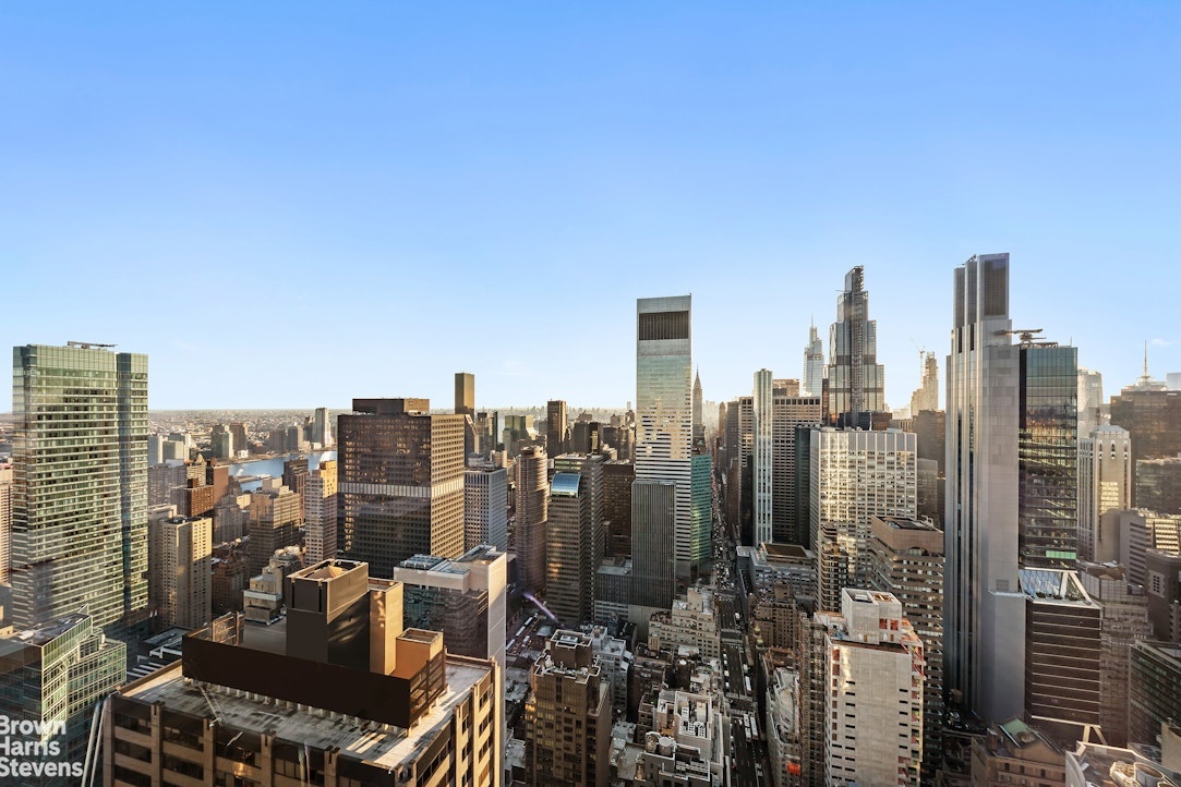 Perched on the 43rd floor, this grand three-bedroom, three-and-a-half-bathroom residence spans nearly 2,500 square feet. Flooded with energizing light through floor-to-ceiling windows, it offers breathtaking sunset views of both the city and the park. Enter through a graceful foyer that leads into a nearly 30-foot gallery, ideal for showcasing artwork and sculptures. The expansive living and dining area features loft-like ceilings and stunning scenery of Central Park, iconic New York architecture, and open skies.