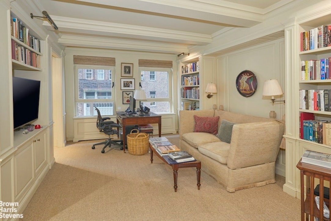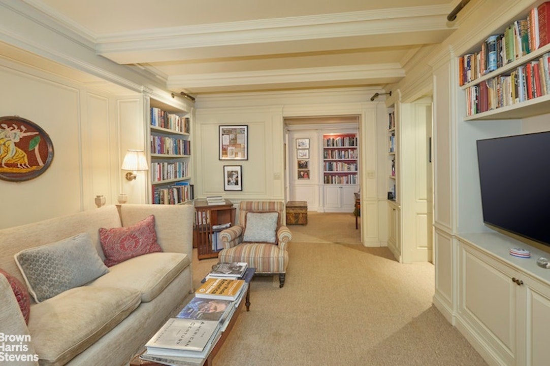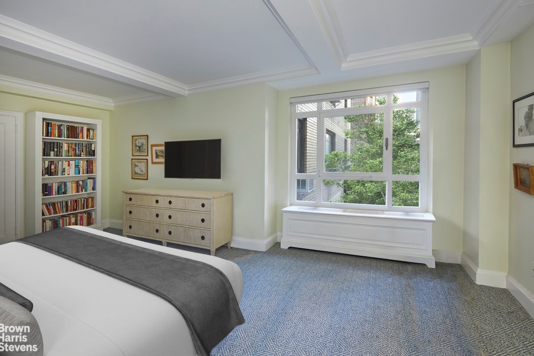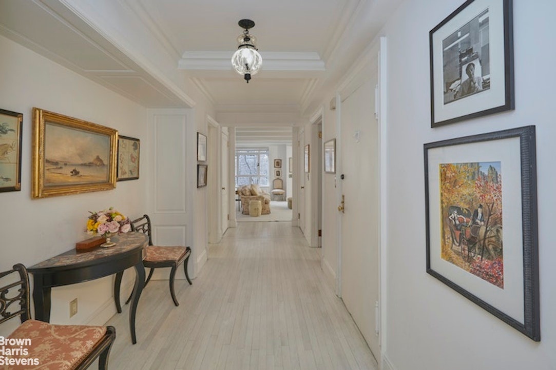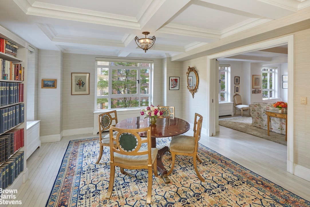 The apartment's spacious foyer leads to a large living room flanked by a formal dining room and a cozy library; all of which look upon tree-top views of Beekman Place. There are three quiet, well-proportioned bedrooms in the private wing of the apartment.